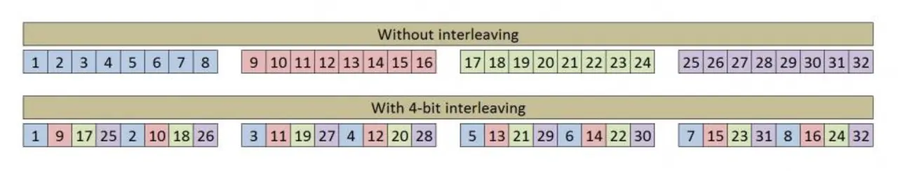 ECC allein löst jedoch noch nicht das Problem einer Störung mehrerer Bits (MBU). Hierfür müssen die Entwickler das sog. Bit-Interleaving einsetzen. Diese Technik ordnet die Bitfolgen so an, dass physikalisch benachbarte Bits in verschiedene Wort-Register geschrieben werden. Der Abstand beim Bit-Interleave verhindert, dass zwei aufeinanderfolgende Bits in dasselbe Wort-Register geschrieben werden. Wenn der Abstand beim Bit-Interleave größer ist, als der von einem über mehrere Bits reichenden Soft-Error betroffenen Bereich, führt dies zur Störung einzelner Bits (SBU) in mehreren Wörtern statt mehrerer Bits (MBU) in einem Wort. Der typische Abstand beim Bit-Interleave hängt von der Prozesstechnologie ab. Es wird ein Neutronentest mit einer anschließenden physikalischen MBU-Analyse durchgeführt, um für jede einzelne Prozesstechnologie den sicheren Abstand beim Interleaving zu ermitteln. Bei einem Speicher mit Bit-Interleave kann der Fehlerkorrektur-Algorithmus für einzelne Bits zur Erkennung und Korrektur aller Fehler eingesetzt werden. Der ECC-Algorithmus wirkt sich nur auf die Kopie des betroffenen Datenworts aus. Die Daten im Speicher enthalten immer noch das umgekehrte Bit. Falls dieses verfälschte Bit im Speicher nicht korrigiert wird, kann das Umkehren eines weiteren Bits im selben Wort zu einem MBU führen. Daher ist es wichtig, dass die ECC-Logik das Auftreten und die Korrektur der Störungen einzelner Bits meldet. Das System kann anhand dieser Information das Ereignis erkennen und die korrigierten Daten zurückschreiben. Diese Technik ist als Memory-Scrubbing bekannt.
