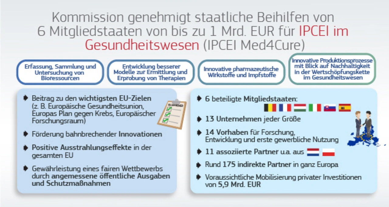 Die Europäische Kommission hat das erste IPCEI (Vorhaben von gemeinsamem europäischem Interesse), mit dem Forschung, Innovation und die erste gewerbliche Nutzung von Gesundheitsprodukten sowie innovative Herstellungsverfahren für Arzneimittel gefördert werden, genehmigt.