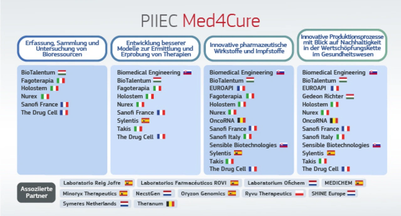 Die 14 Vorhaben sind Teil des IPCEI-Med4Cure-Ökosystems, das zudem elf assoziierte Partner in vier Mitgliedstaaten (Belgien, Niederlande, Polen und Spanien) und rund 175 indirekte Partner (Unternehmen oder Forschungseinrichtungen, die von den verschiedenen Verbreitungsaktivitäten des IPCEI Med4Cure profitieren werden) umfasst.