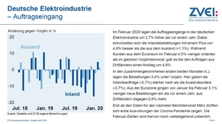 Auch die Februarzahlen der deutschen Elektroindustrie zeigen die Auswirkungen der Corona-Pandemie noch nicht. Allerdings verschlechtert sich das Geschäftsklima deutlich und die Produktionspläne wurden nach unten korrigiert.