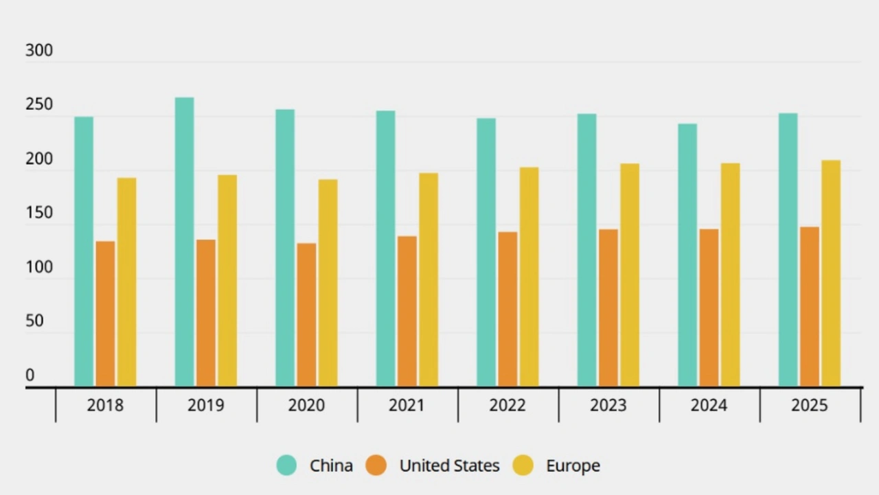 Der negative Trend dürfte sich 2021 mit einem Umsatzrückgang auf 254,5 Mrd. US-Dollar fortsetzen. Für das Jahr 2022 erwartet man einen weiteren Umsatzrückgang auf 247,5 Mrd. US-Dollar – 19 Mrd. US-Dollar weniger als vor der Pandemie. Obwohl sich der chinesische Markt bis 2025 auf 252,3 Mrd. US-Dollar erholen soll, ist das immer noch deutlich weniger als 2019.
