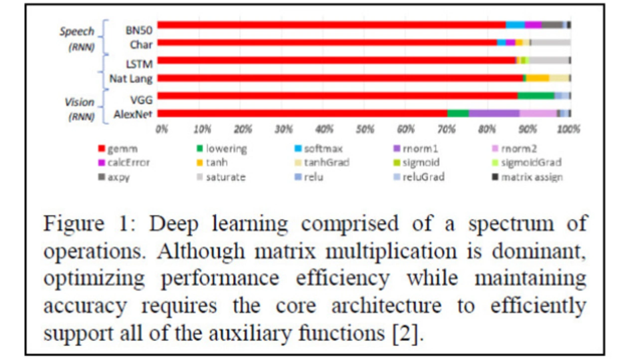 Um über zukünftige KI-Hardware zu sprechen, lohnt es sich, KI-Algorithmen zu analysieren. In tiefen neuronalen Netzen sind Matrix-Multiplikationen der Kern von Deep-Learning-Netzen. In vollständig verdrahteten Netzen reisen die Daten durch das Netzwerk in Form von Vektor-Matrix-Multiplikationen. Um die Computer-Ressourcen dabei besser auszulasten, werden mehrere Datenpunkte zu Stapeln (mini-batch) zusammengefasst. In neuronalen Faltungs-Netzen (Convolutional Neural Networks — CNN) lässt sich die Eingangs-Faltungs-Operation als Matrix beschreiben und der erste Schritt ist dann eine Matrix-Matrix-Multiplikation. Für diese Aufgabe optimierte Systeme zu entwickeln erfordert eine Betrachtung des Ende-zu-Ende-Systems, einschließlich der Transistorstrukturen, Hardware, Software und der Programmierung.