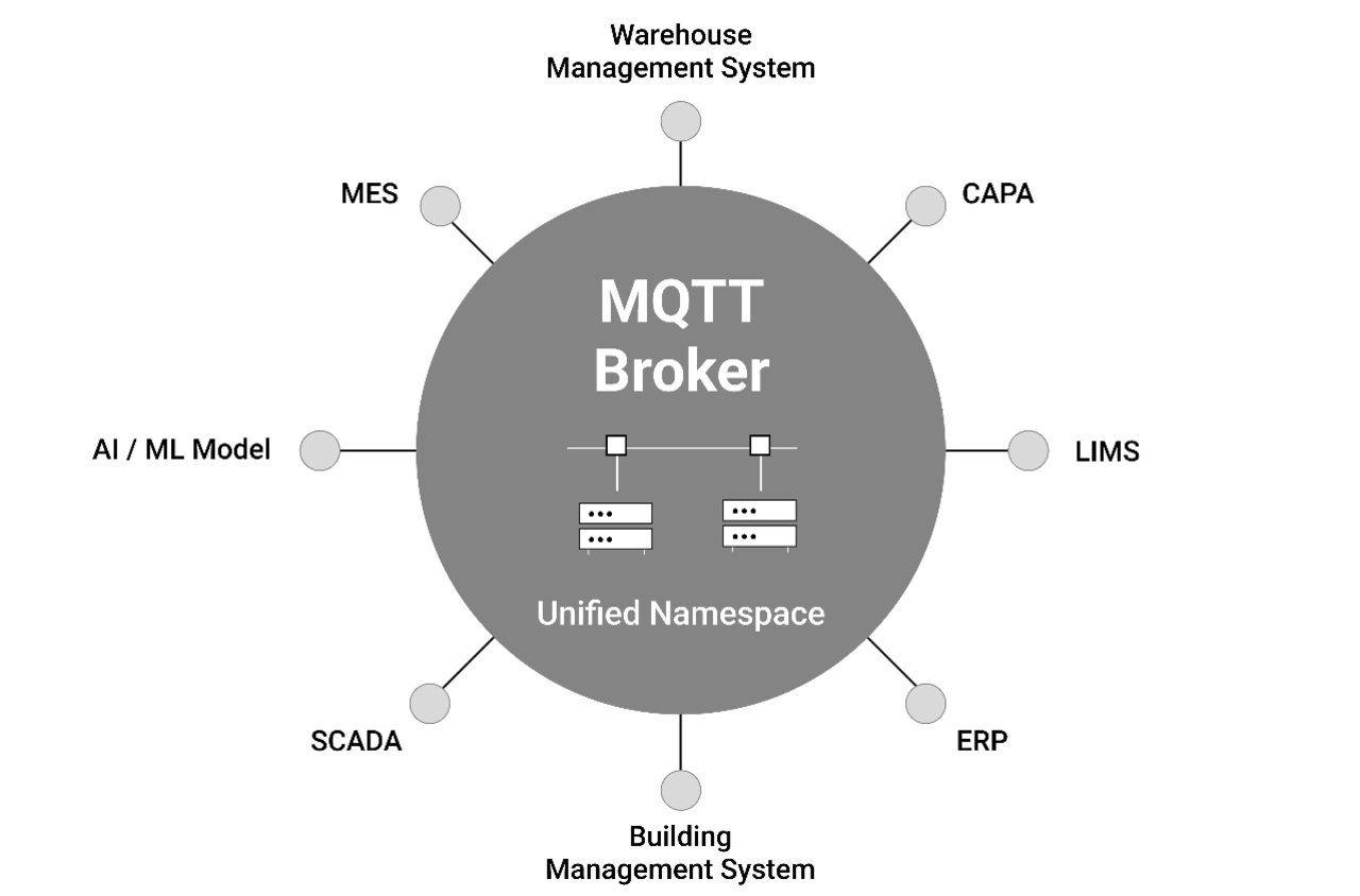 An MQTT broker is the most commonly used middleware infrastructure for UNS implementation, since MQTT is also the most commonly used messaging protocol for the Internet of Things (IoT). The protocol is lightweight, event-driven, and connects devices using the publish-subscribe communication pattern.
