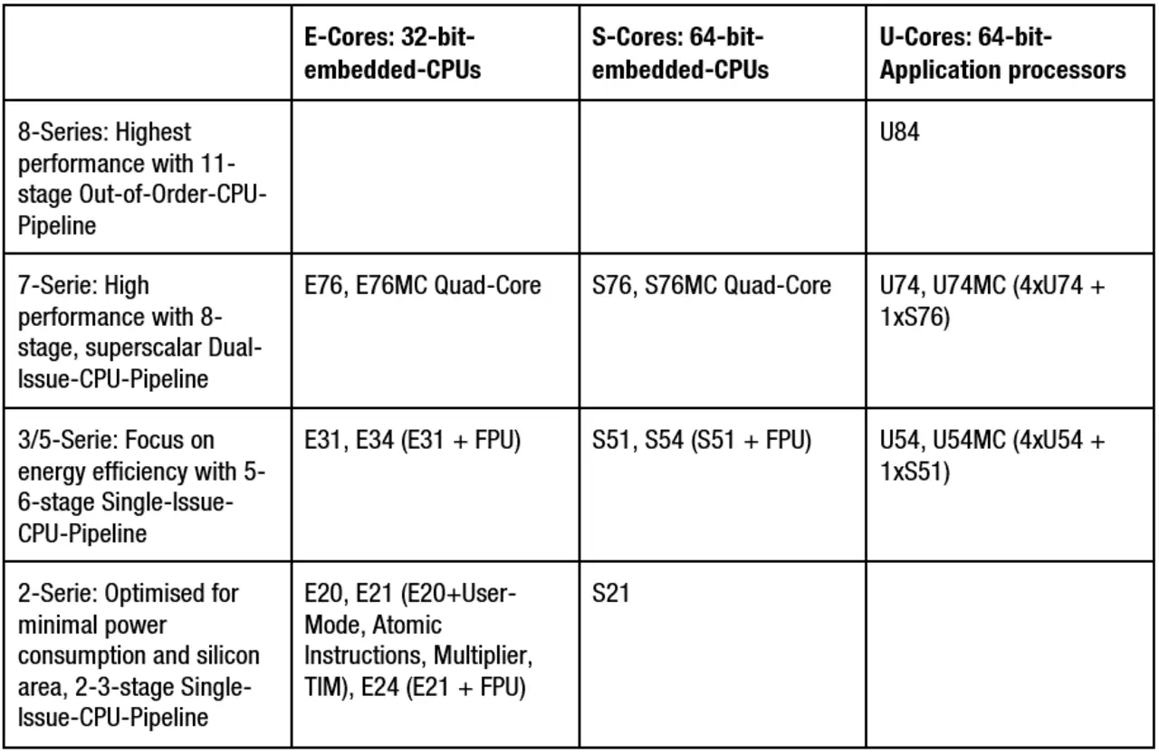At the high end of the performance scale is the new U74MC IP core, which builds on the U54 and already offers multicore configurations and Linux compatibility. The U74MC features a double precision floating point unit (FPU) as standard. Up to nine of the 64-bit cores can share an L2 cache with ECC protection. For embedded applications, there is the 32-bit E76 and the 64-bit S76, which contain an FPU that calculates with single precision. With 4.9 CoreMark/MHz and a clock frequency that is around 10 % higher than the predecessor Series 5, users get significantly higher computing performance with the Series 7. In addition, there are further improvements to the memory subsystem compared to the Series 5:
