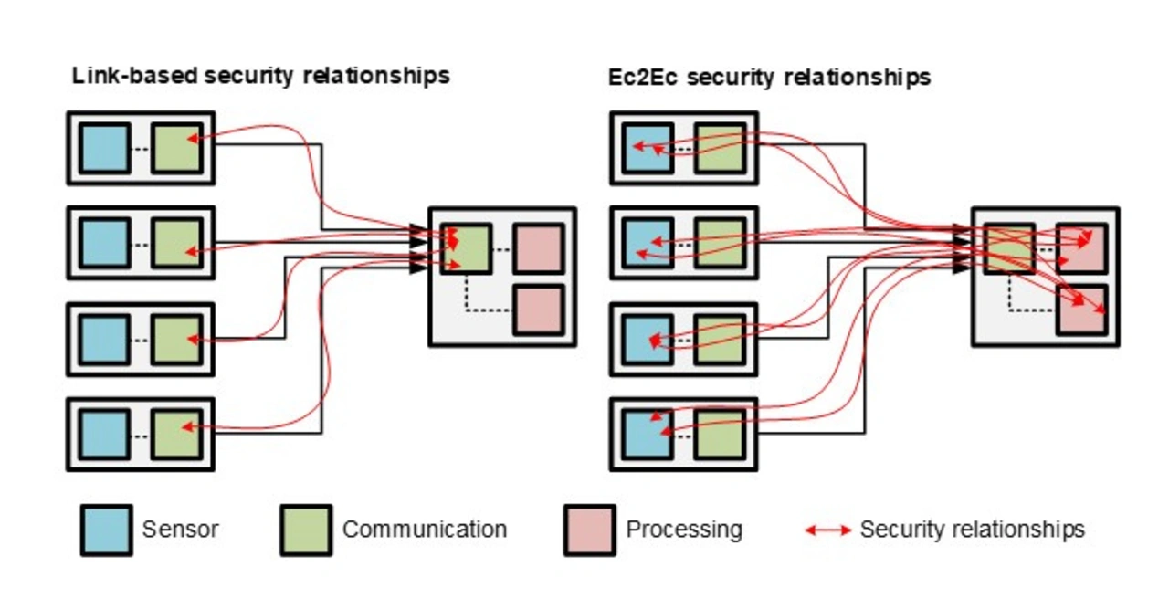 The advantages are the enabling of an application independent link-based security mechanism and a defined, efficient key exchange mechanism with symmetric keys. This is the only way to reduce complexity and overhead in the processing units, while allowing safe and secure sensor implementations from multiple vendors.