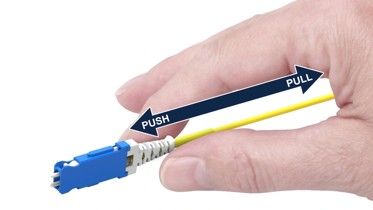 Wichtig: Die »SN EZ-Flip«-Bauform der SN-Stecker mit optimiertem Push-Pull-Verriegelungsmechanismus ermöglicht es, vor Ort die Polarität zu wechseln, ohne Gefahr zu laufen, die Fasern dabei zu brechen.