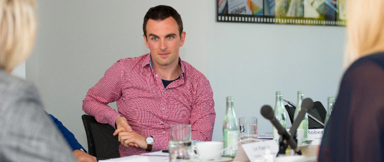 Robert Lee kann alldem beipflichten. Der gebürtige Ire ist CFO von Eluminocity, einem schnellwachsenden Startup, das LED-Straßenbeleuchtung mit Elektro-Ladesäulen für E-Autos kombiniert. »Wir arbeiten mit Infineon und BMW zusammen, auch mit Intel. Ich arbeite sehr gerne mit solchen großen Unternehmen zusammen. Warum? Weil die sehr gerne mit Startups arbeiten möchten!« erzählt Lee. Man biete etwas, was die Konzerne nicht hätten, und sei damit auf Augenhöhe.