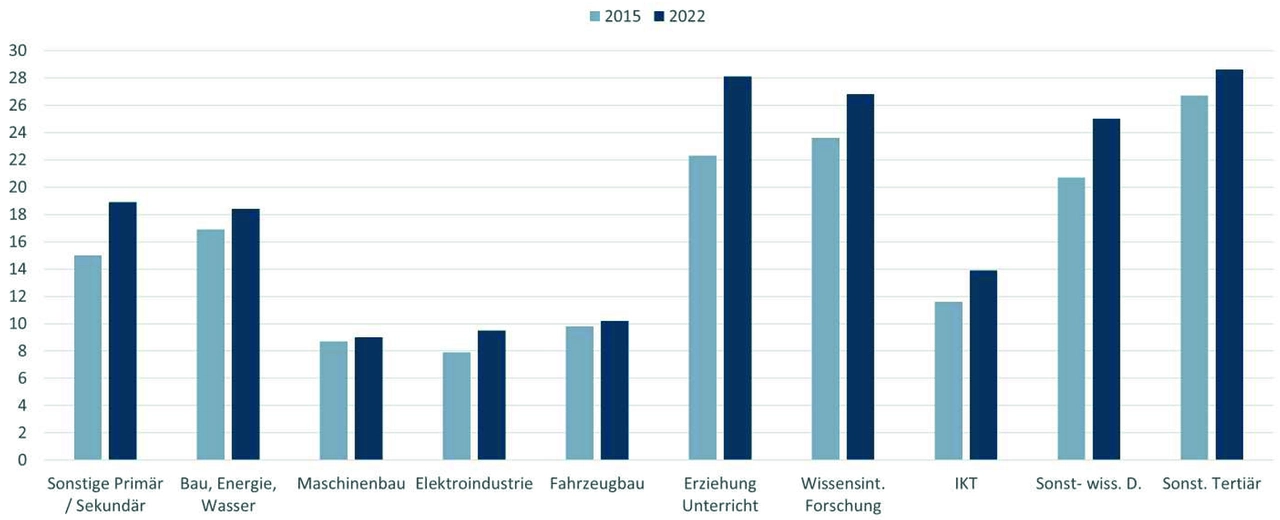 Hinzu kommt ein zweiter, oft übersehener Effekt: Viele Frauen mit ingenieurwissenschaftlichem Abschluss arbeiten nicht in klassischen Ingenieurberufen. Stattdessen wechseln sie in Bildung, Forschung oder andere wissensintensive Bereiche. Knapp 200.000 Ingenieurinnen sind außerhalb ihres eigentlichen Berufsfeldes tätig, zeigen die IW-Zahlen.