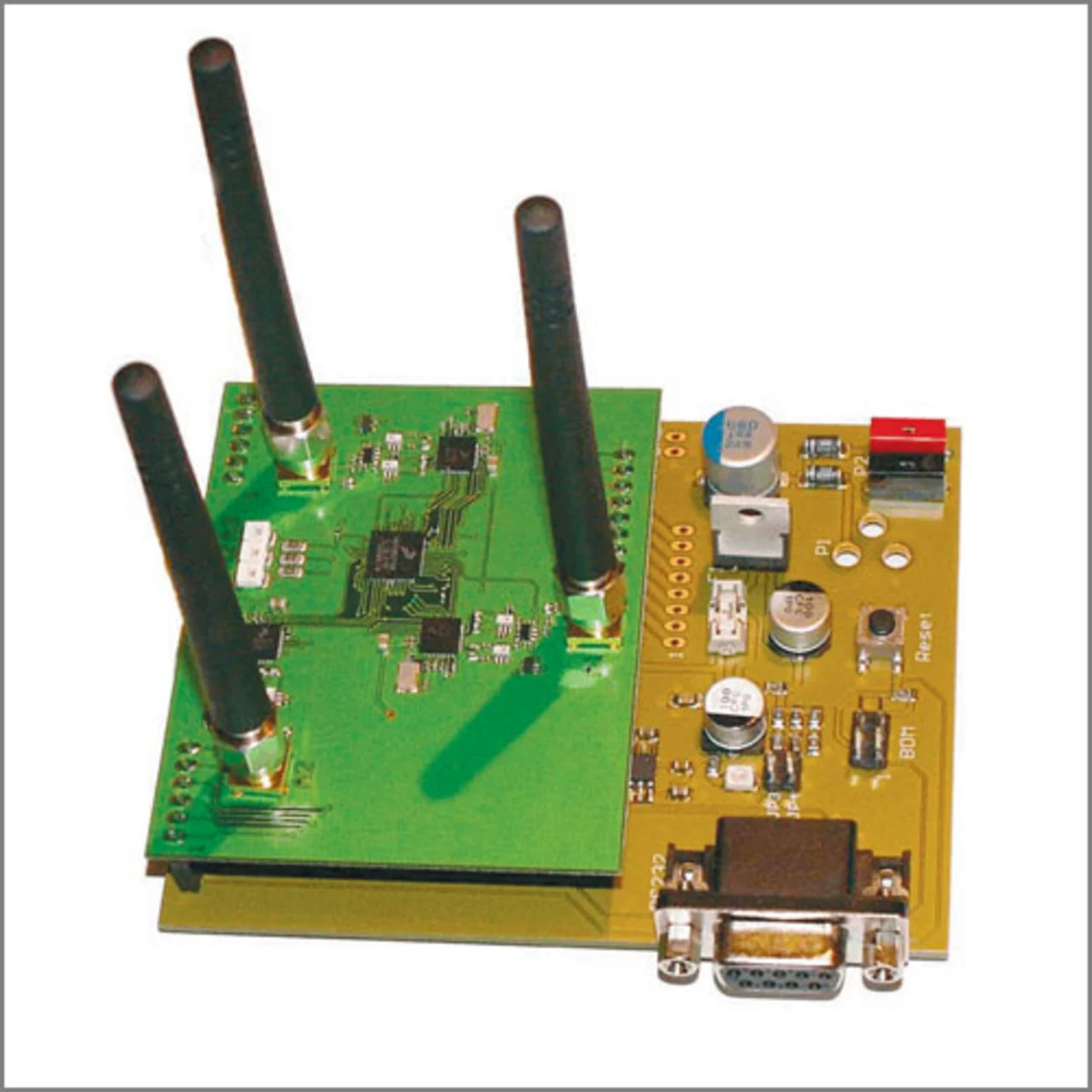 Um den Aufwand für ein reales Produkt in Grenzen zu halten, schieden aufgrund des komplexen Realsierungsaufwands die gewinnstarken EGC- (Equal Gain Combining) und MRC-Diversitätsverfahren (Maximum Ratio Combining) von vorneherein aus. Eine Phasen- und Symbolsynchronisation würde gerade bei der O-QPSK-Modulation nach dem Funkstandard IEEE 802.15.4 nicht unerhebliche Probleme bereiten. Insofern stellten Switched und Selection Combining (SEC) weitaus einfachere und kostengünstige Varianten der Antennendiversität dar, wobei mit SEC theoretisch ein höherer Prozessgewinn erreicht werden kann. Bild 4 zeigt als Beispiel ein solches Diversitätsmodul.