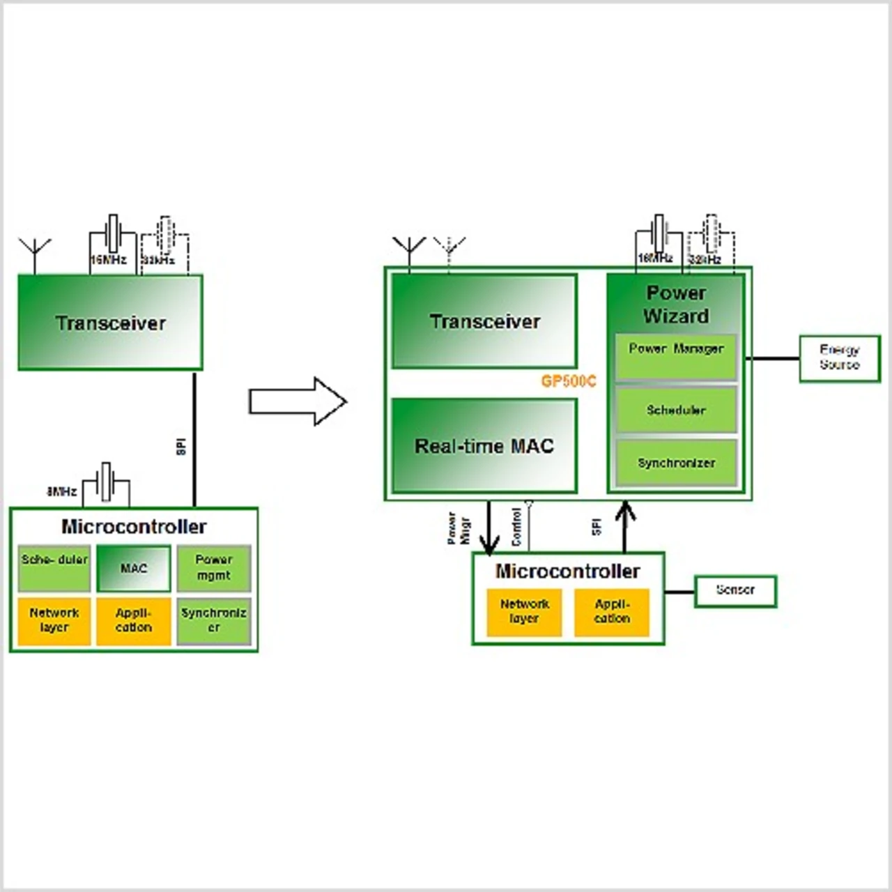 Zum Baustein sind sowohl ein Referenzdesign sowie ein spezielles Development-Kit zur Entwicklung eigener Kommunikationsmodule und -applikationen verfügbar. Der GP500C Transceiver unterstützt mehrere Kommunikations-Stacks, die auf verschiedenen Prozessorarchitekturen lauffähig sind, wie zum Beispiel ZigBee PRO, LowPowerRouting, LowPowerSensing und MicroStack.