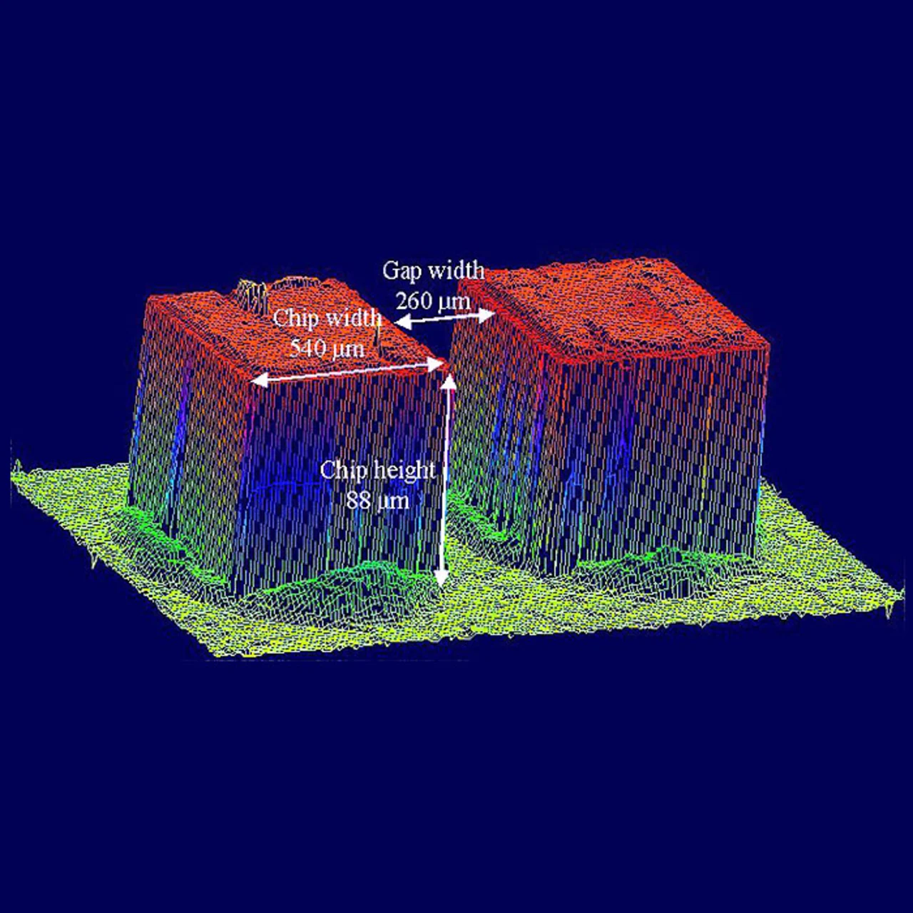Durch die in den letzten Jahren verfügbar gewordenen frequenzmodulierbaren Laserdioden ist es nun möglich, ein dem Mikrowellenradar ähnliches Verfahren im optischen Bereich zu realisieren. Mit dem so genannten „Chirped Laser Radar“ können aus mehreren Metern Entfernung an natürlichen Oberflächen Genauigkeiten bis zu 10 μm Tiefe erreicht werden – das ist weniger als ein Fünftel eines Haardurchmessers (Bild 4). Die Daten-Taktfrequenz liegt bei einigen kHz.