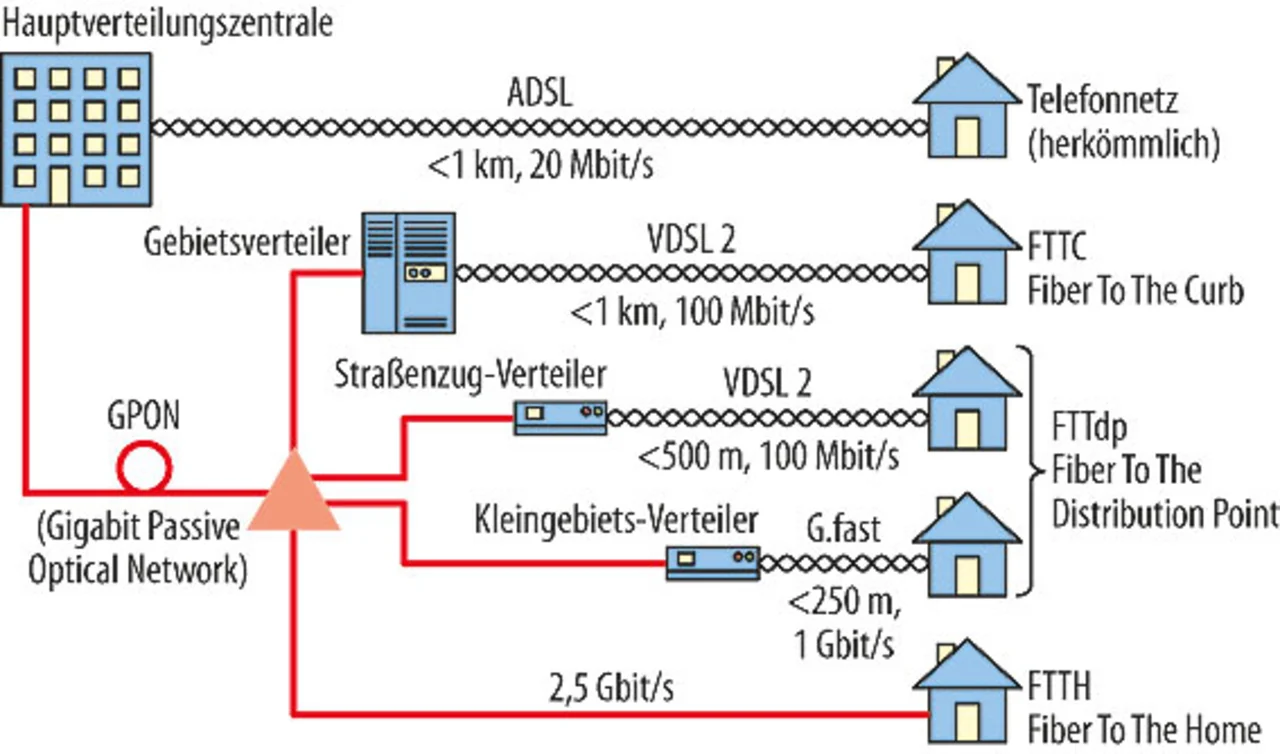 Um hohe Datenraten über symmetrische Kupferleitungen zu erzielen, müssen auch hohe Frequenzbereiche genutzt werden. Das ist nur möglich, wenn die Strecke, über die die Daten auf Kupferleitungen übertragen werden, kurz ist.