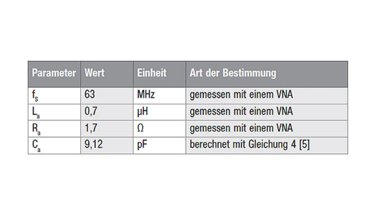 Ihre Parameter (Tabelle 1) wurden durch Messung und Berechnung bestimmt. Die Werte für La und Ra wurden bei 13,56 MHz gemessen.