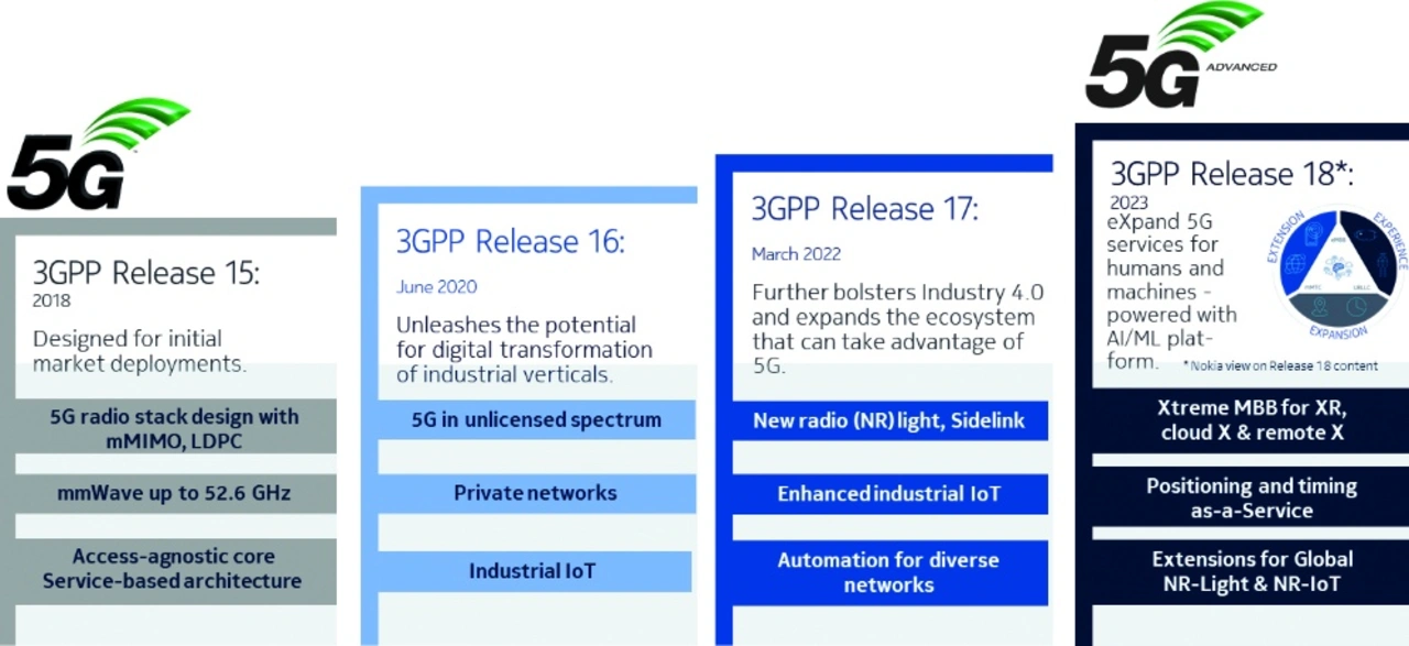 Ob Non-Standalone oder Standalone, Betreiber oder privat: Alle heutigen 5G-Netze beruhen auf der ersten Version des 5G-Standards, dem 3GPP Rel 15 (3rd Generation Partnership Project Release 15). Dieser Standard wurde im Wesentlichen gegen Ende 2018 fertiggestellt.