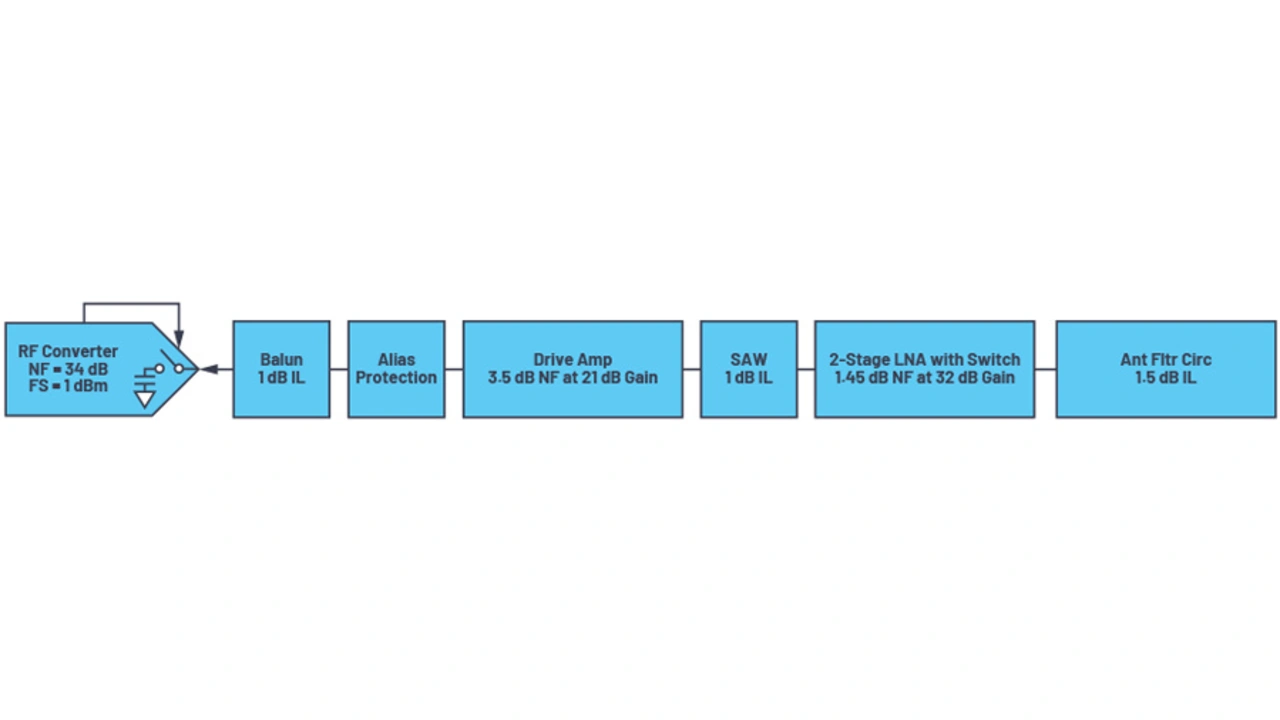 Die direkte HF-Abtastung und das Prinzip der Signalumsetzung ohne Zwischenfrequenz, wie beim Synchrodyn-Empfänger, unterscheiden sich besonders in der Anordnung der Verstärker. Wie in Bild 1 dargestellt, benötigt die Schaltung mit direkter HF-Abtastung ihre gesamte Verstärkung im HF-Bereich, da alle Funkfrequenzen bei der Signalverarbeitung konstant bleiben.