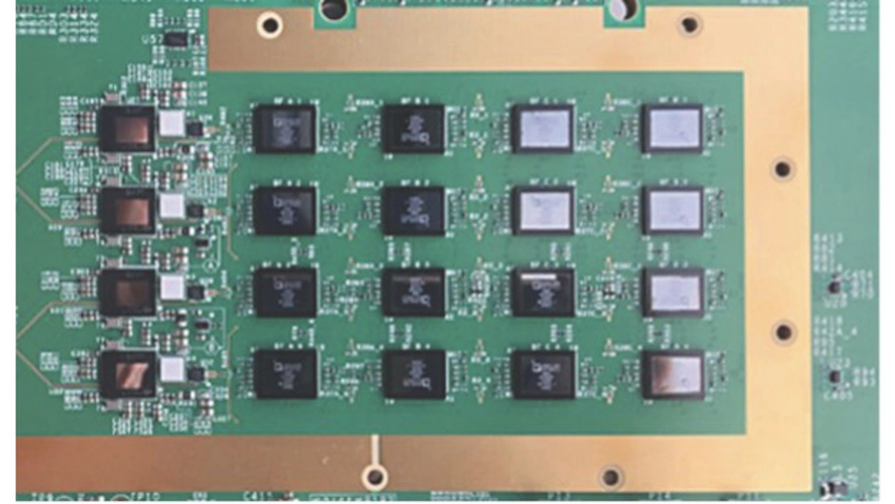 Ein dual polarisiertes mmWellen-Antennenarray mit 256 Elementen bei 28 GHz wurde auf einer mehrlagigen Leiterplatte mit Beamforming-ICs und mmWellen-Auf-/Abwärtsmischern von Analog Devices entwickelt (Bild 2).