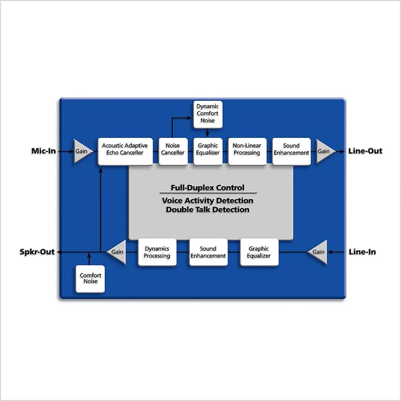 Neben dem Echo, welches die nahseitige Signalqualität beeinträchtigt, können auch Hintergrundgeräusche ein Problem darstellen. Die Lösung dazu besteht im Einsatz einer Geräuschunterdrückung. Die typische Geräuschunterdrückung arbeitet unabhängig von der oben beschriebenen Echounterdrückung, sodass keine Wechselwirkungen berücksichtigt werden. Im Gegensatz zur Echounterdrückung verfügt die Geräuschunterdrückung über kein Referenzsignal, auf das es trainiert werden kann. Sie muss den Sprachanteil sowie den Geräuschanteil abschätzen, um den Geräuschanteil aus dem Mikrofonsignal entfernen zu können. In beiden Fällen ist das Training nur auf das Geräusch extrem wichtig, um die bestmögliche Leistung zu erhalten. Außerdem müssen Geräusch- und der Echounterdrückung eng zusammenarbeiten, denn ohne diese Interaktion kann es vorkommen, dass das System unbeabsichtigt versucht, die Sprache anstatt das Geräusch zu unterdrücken.