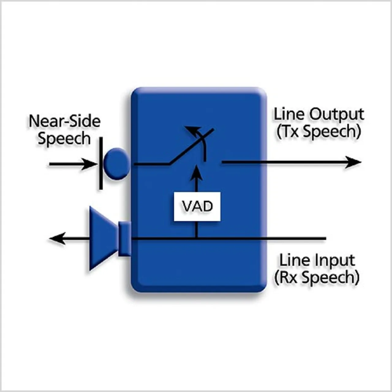 Der grundlegendste Versuch, das Echoproblem zu lösen, besteht einfach darin, den nahseitigen Sprachpfad auszuschalten, wenn die Stimme an der Gegenstelle erkannt wird (Bild 1). Dies schaltet akustische Echos aus, führt jedoch dazu, dass jeweils immer nur eine Person sprechen kann. Der Effekt ist dann wie bei einem Handfunkgerät, wo die anderen Teilnehmer nicht mehr zu hören sind, solange man die Sprechtaste gedrückt hält. Deshalb gehört es im Zweiwege-Sprechfunk zum guten Ton, den Redepart durch Ankündigung von »Kommen« oder »Over« abzugeben. Neuere Technik ersetzte die Sprechtaste durch einen »Voice Activity Detector« (VAD), welcher den nahseitigen Sprechpfad automatisch öffnet und schließt, wenn die Gegenstelle spricht. Diese Beschränkung wurde in den Anfangstagen der mobilen Kommunikation hingenommen, wird heute aber nicht mehr toleriert. Benutzer sind an Vollduplex- Gespräche im Festnetz gewöhnt, wo sie Zwischenbemerkungen einbringen, Zustimmung oder Ablehnung signalisieren oder auch demonstrativ schweigen können, ohne befürchten zu müssen, dass ihnen das Mikrofon »aus der Hand genommen wird«.