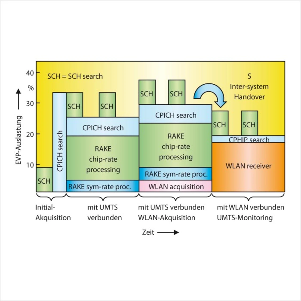 Festverdrahtete Bausteine kommen aktuell nur in solchen Mobilgeräten zum Einsatz, bei denen nur eine relativ kleine Anzahl von (festen) Standards implementiert werden muss. Während solche Lösungen bei einer Realisierung von nur wenigen Standards noch Kostenvorteile aufweisen, steigt parallel zu weiteren zu implementierenden Standards die benötigte Fläche schnell. In einer unlängst durchgeführten Untersuchung zu den verfügbaren Lösungen wies ein System, das innerhalb eines Gerätes die Standards EDGE, R’99, HSDPA und HSUPA mit Hilfe der heute angewendeten Möglichkeiten mit dedizierten Blöcken unterstützte, eine um 50 bis 120 Prozent größere Fläche als eine entsprechend programmierbare Lösung auf (wie zum Beispiel die EVP-Lösung von ST-NXP Wireless, s. Kasten „Die EVP-Architektur von ST-NXP Wireless“. Der Hauptgrund dafür liegt in den zum Teil beträchtlichen Unterschieden zwischen den einzelnen Standards. Die benötigte Entwicklungszeit für eine effiziente Ressourcenteilung zwischen den implementierten Standards innerhalb einer Hardware-Realisierung ist dabei einfach zu hoch, um auf dieser Ebene ein optimiertes Ergebnis erreichen zu können. Darüber hinaus bietet eine programmierbare Lösung den Vorteil einer einfachen nachträglichen Implementierung von neuen, intelligenteren Algorithmen, ohne dafür ein neues „Tape out“ machen zu müssen – ganz zu schweigen von der größeren Flexibilität zur Anpassung an veränderte Standards und Feldtest-Ergebnisse.