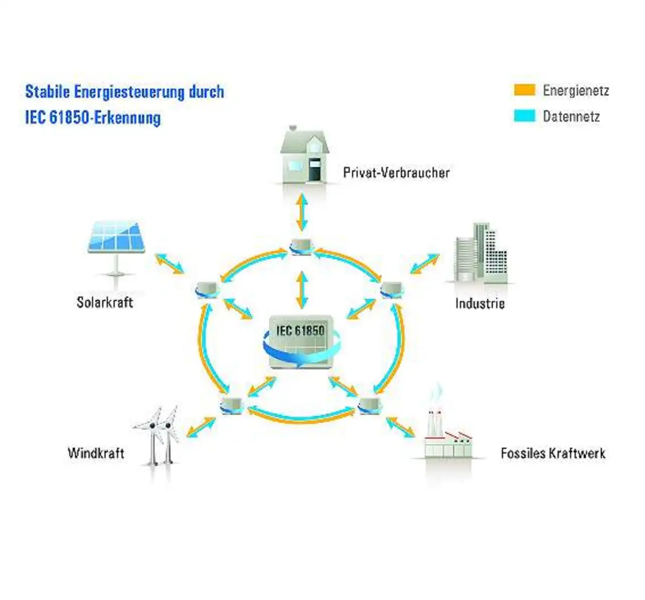 Es geht um »intelligente« Geräte zur bedarfsgerechten Steuerung von Verbrauchern oder zur automatisierten Ansteuerung und Abschaltung von Stromerzeugern bei Frequenz- und Lastschwankungen im Netz. Bei den Spannungsebenen in Deutschland zeigt sich hier allerdings ein unterschiedliches Bild. Während im Höchst- und Hochspannungsnetz (110 kV bis 380 kV) mehr als tausend Substationen mit »intelligenten« Systemen implementiert sind, die Smart-Grid-fähig sind, existieren im Mittelspannungs- (6 kV bis 60 kV) und Niederspannungsbereich (230 V bis 400 V) noch nicht genügend Geräte, die einen Smart-Grid-Standard unterstützen.