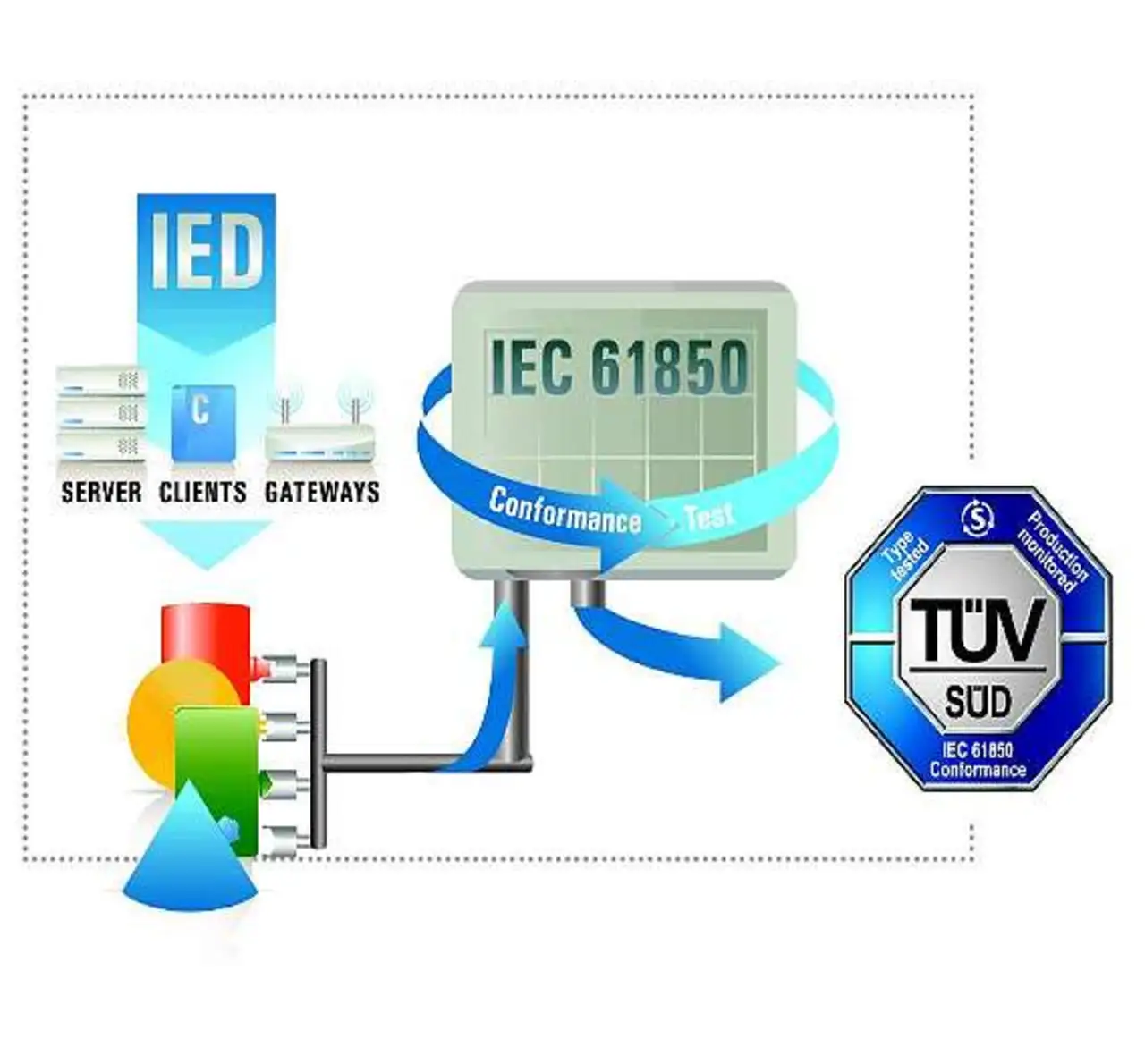 Ergänzend zu den Konformitätstests (Bild 2) sollten praxisnahe Performance- sowie Interoperabilitätstests (Bild 3) für Steuerungsgeräte von Sensoren, Aktoren, Signalgebern, Schutztechnik oder Smart-Metern vorgenommen werden. Die Tests sind auf Basis der ersten Edition und der bald vollständig verfügbaren zweiten Edition der IEC 61850 durchzuführen.