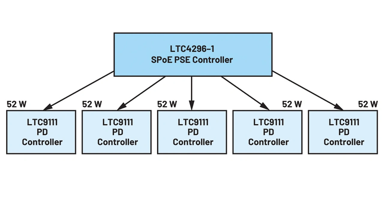Die Controller der Serie LTC9111 senden eine gültige Wake-up-Signatur an das PSE, um Strom anzufordern. PSE- und PD-Controller, dem »IEEE802.3cg«-Standard entsprechend, führen den Klassifizierungsschritt unter Verwendung des »Serial Communication Classification Protocol« durch; der PSE stellt sicher, dass der PD kompatibel ist, und fährt, falls dies der Fall ist, mit dem Hochfahren der Portspannung fort. Benötigt das betriebene elektrische Gerät eine andere Spannung als 24 V oder 55 V, wird ein zusätzlicher DC/DC- Wandler eingesetzt.