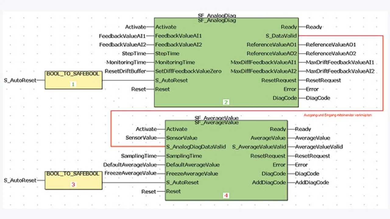 Wenn dann Kompatibilität zwischen der Anwendung und der Safe-AI-Lösung gegeben ist, wird die offizielle Bestellung des Solution Package Safe AI ausgelöst. Das Solution Package umfasst den Versand eines Lizenzschlüssels zur Aktivierung der Funktionsbaustein-Bibliothek AnalogInput_SF, die im sicheren Programmier-Tool SafetyProg angesiedelt ist (Bild 3).