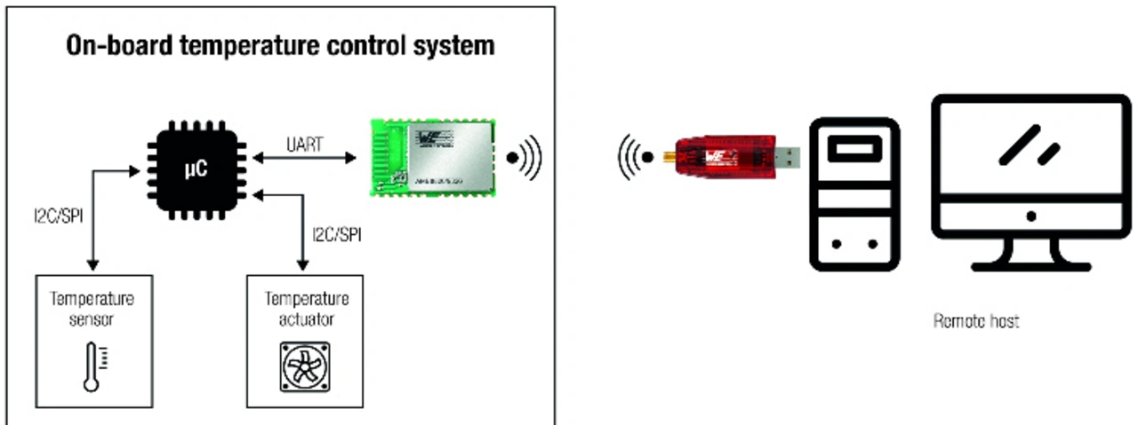 Teilen sich mehrere Funkgeräte denselben Funkkanal, ist die Erstellung eines drahtlosen Netzwerks von wesentlicher Bedeutung. Im Fall des Temperaturüberwachungsbeispiels bedeutet dies, dass in einem großen Industriekomplex mehrere Maschinen mit dem drahtlosen Temperaturüberwachungssystem ausgestattet sind. Der zentrale Host, der diese Systeme steuert, empfängt Temperaturdaten von all diesen Systemen.