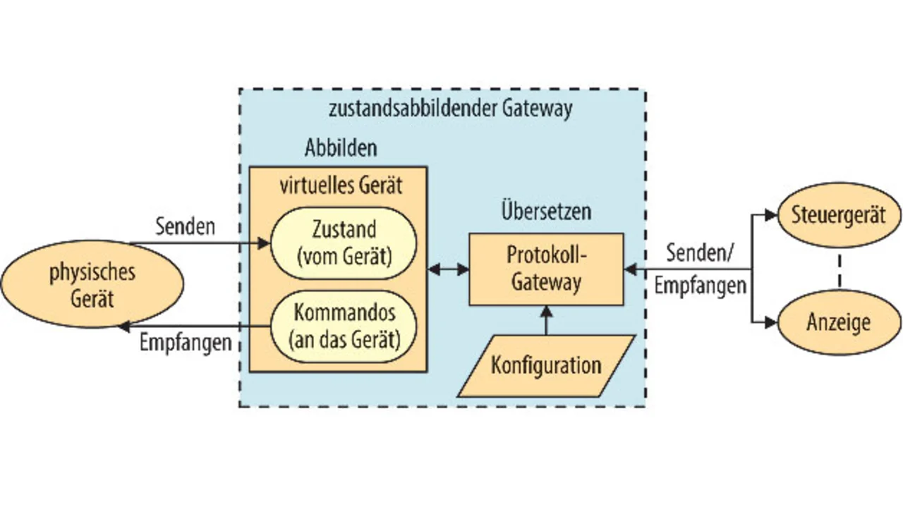 Traditionelle (transaktionsorientierte) Gateways übersetzen empfangene Kommandos/Daten und senden diese normalerweise sofort weiter. Eine Zwischenspeicherung findet hauptsächlich als Pufferung bei unterschiedlicher Datenrate oder für Konfigurationsparameter statt. Ein solcher Ansatz ist nicht möglich für Geräte, die die meiste Zeit nicht aktiv sind und deren Zustand daher nicht direkt abgefragt werden kann (z.B. energieautarke drahtlose Temperatursensoren). Der fundamentale Lösungsansatz hierzu ist die Abbildung des Zustands dieser Geräte im Gateway.