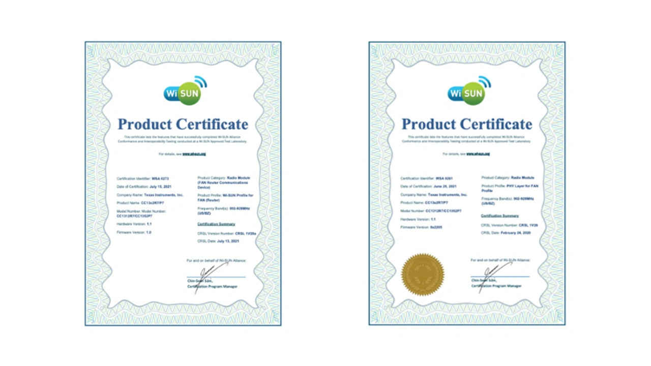 Es ist deshalb besser, nach einem Anbieter eines Software Development Kits (SDK) Ausschau zu halten, das einen zertifizierten Wi-SUN-Stack gemäß Wi-SUN Field Area Network (FAN) 1.0 sowie Bitübertragungsschichten (Physical Layers) enthält, die für die in Nordamerika, Indien, Singapur, Brasilien sowie in Europa, dem Nahen Osten und Afrika gebräuchlichen Frequenzbänder (800 MHz und 900 MHz) zertifiziert sind.