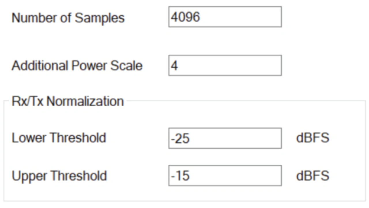 Additional Power Scale ist ein erweiterter Parameter. Meistens empfiehlt es sich, den Standardwert von 4 für den ADRV9002 zu verwenden. Der Parameter hängt mit der internen Korrelationsmatrix zusammen. Versuche haben ergeben, dass der Standardwert die optimale Leistungsfähigkeit für die getesteten Wellenformen und Leistungsverstärker bietet. In seltenen Fällen, in denen die Amplitude des Eingangssignals extrem klein oder groß ist, können Entwickler versuchen, diesen Wert auf kleinere oder größere Werte einzustellen, damit die Korrelationsmatrix eine geeignete Bedingungszahl erhält und damit stabiler arbeitet.