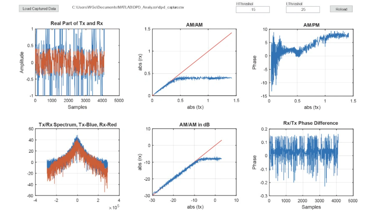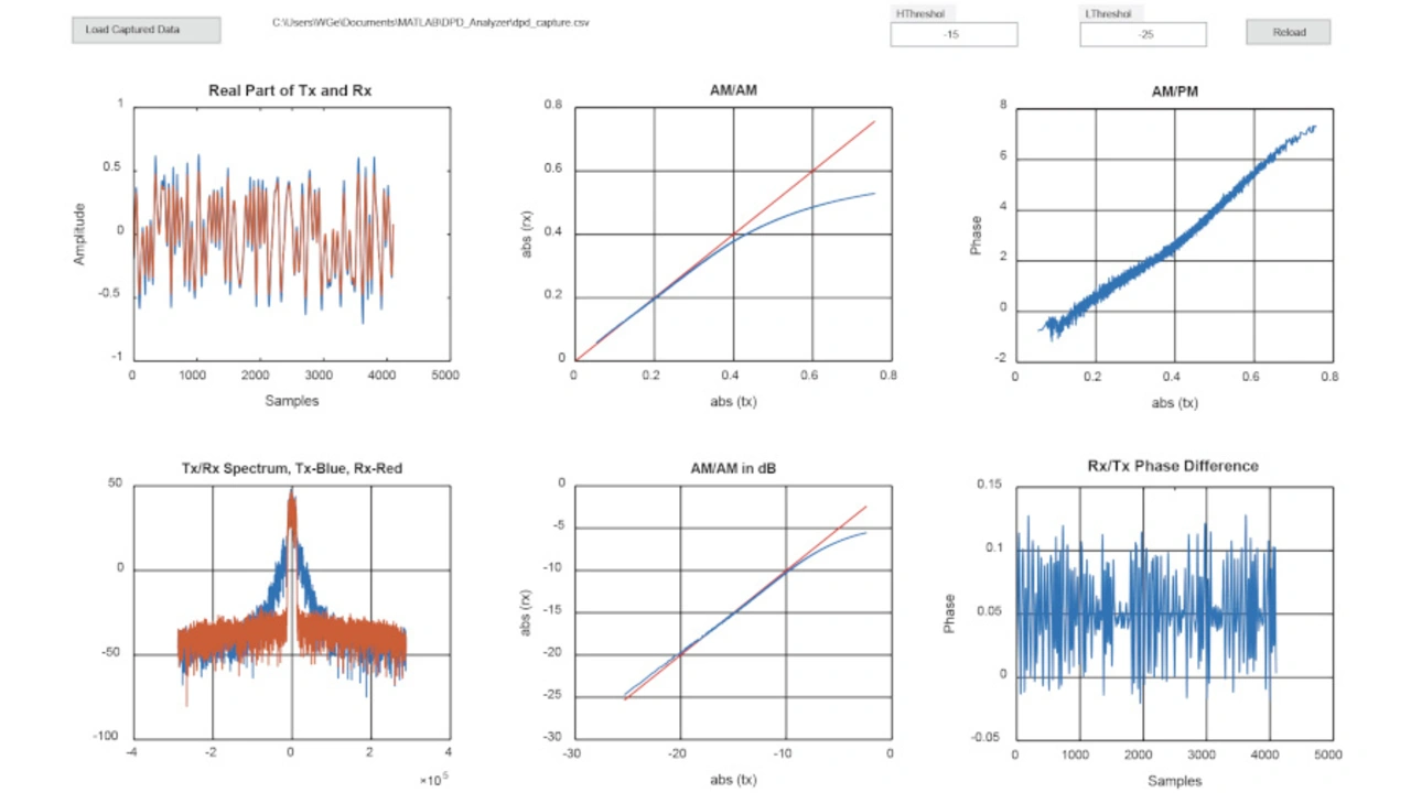 Jeder Leistungsverstärker hat seine eigene Spezifikation im Hinblick auf die mögliche Kompression. Obwohl die Daten für den 1-dB-Kompressionspunkt (P1dB) in der Regel in den Datenblättern stehen, sollten Entwickler in der Praxis genaue Messungen der digitalen Vorverzerrung vornehmen, um sicherzustellen, dass der Kompressionspunkt bei 1 dB liegt. Die DPD-Software bietet die Möglichkeit, die AM/AM-Kurve auf Basis der erfassten Daten zu betrachten, um zu sehen, wie nahe der Kompressionspunkt im Vergleich zum P1dB liegt.