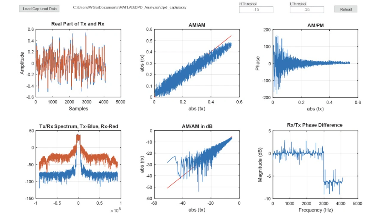 Nachdem die Pfadverzögerungszahl eingestellt ist, lässt sich beobachten, dass die AM/AM- und AM/PM-Kurven viel sauberer sind und weniger Rauschen aufweisen. Auch die Phasendifferenz ist wesentlich geringer.
