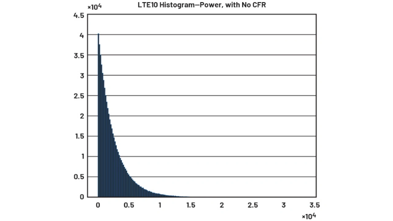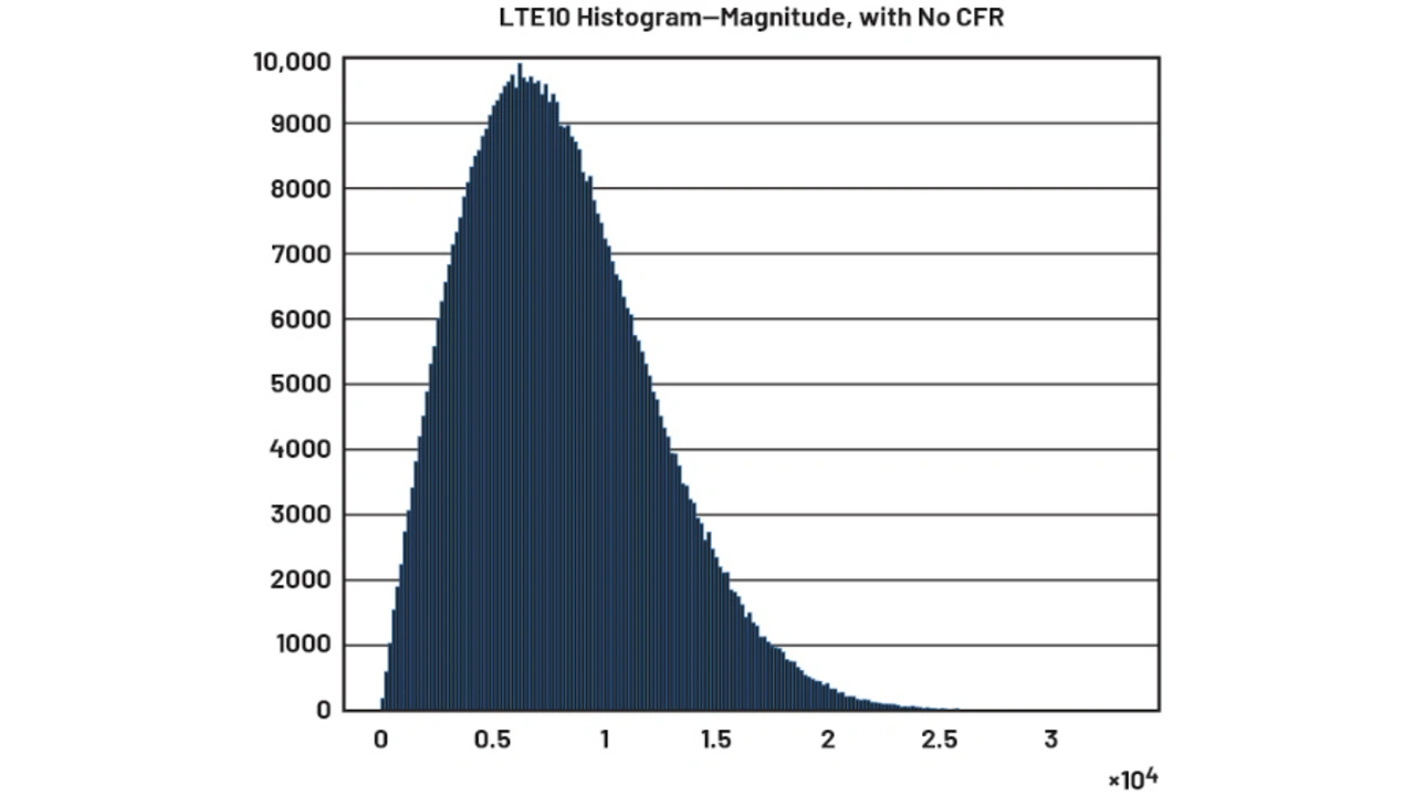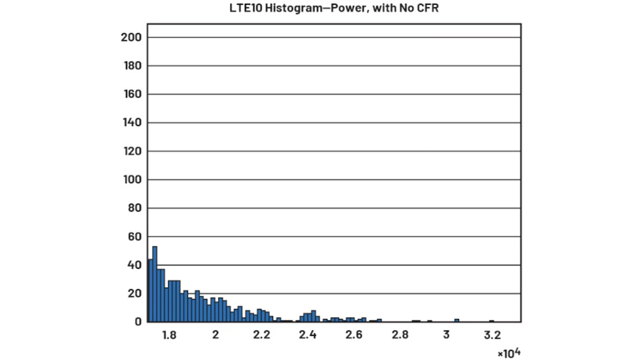 Die Crest-Faktor-Reduzierung wird den Daten »schaden« und zwar insofern, dass sich die EVM (Error Vector Magnitude) verschlechtert. Im Vergleich zur gesamten Wellenform ist jedoch die Wahrscheinlichkeit, dass Amplitudenspitzen mit hohem Pegel auftreten, sehr gering und die auftretenden Vorteile sind enorm.