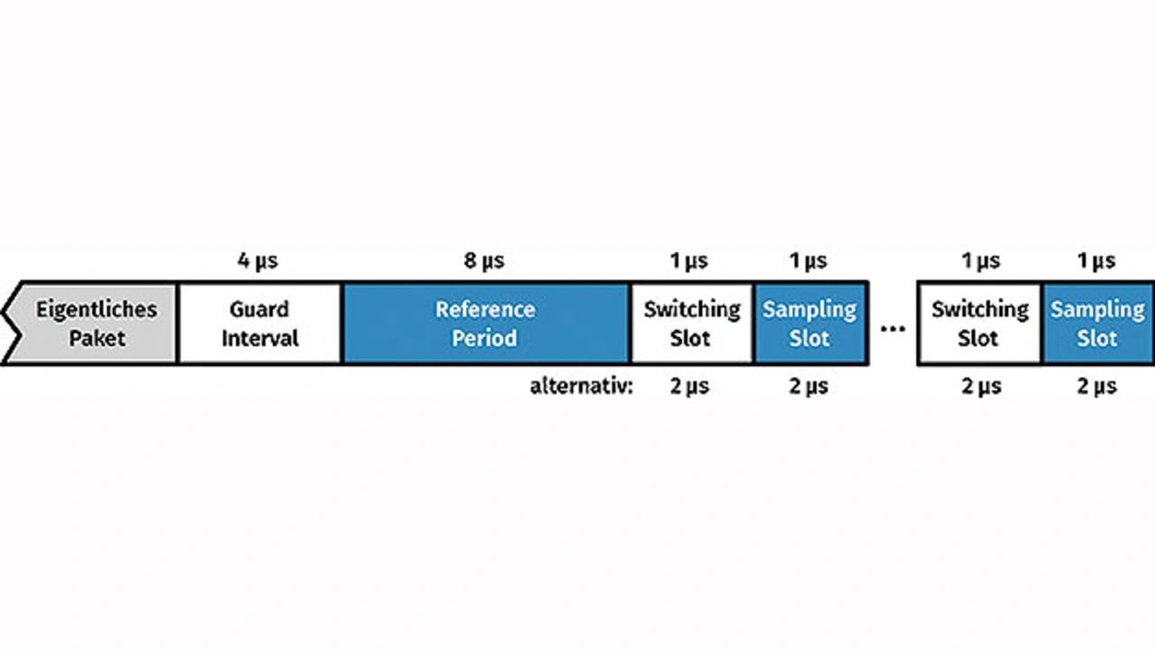 In der Praxis werden die Signale, die an den jeweiligen Antennen empfangen werden, nicht gleichzeitig sondern nacheinander gemessen. Der Bluetooth-Standard sieht hierfür eine Zeitspanne vor, die »Constant Tone Extension« (CTE), die – wie der Name vermuten lässt – an das eigentliche Bluetooth-Paket angehängt, d. h. zeitlich unmittelbar dahinter gesendet, wird.