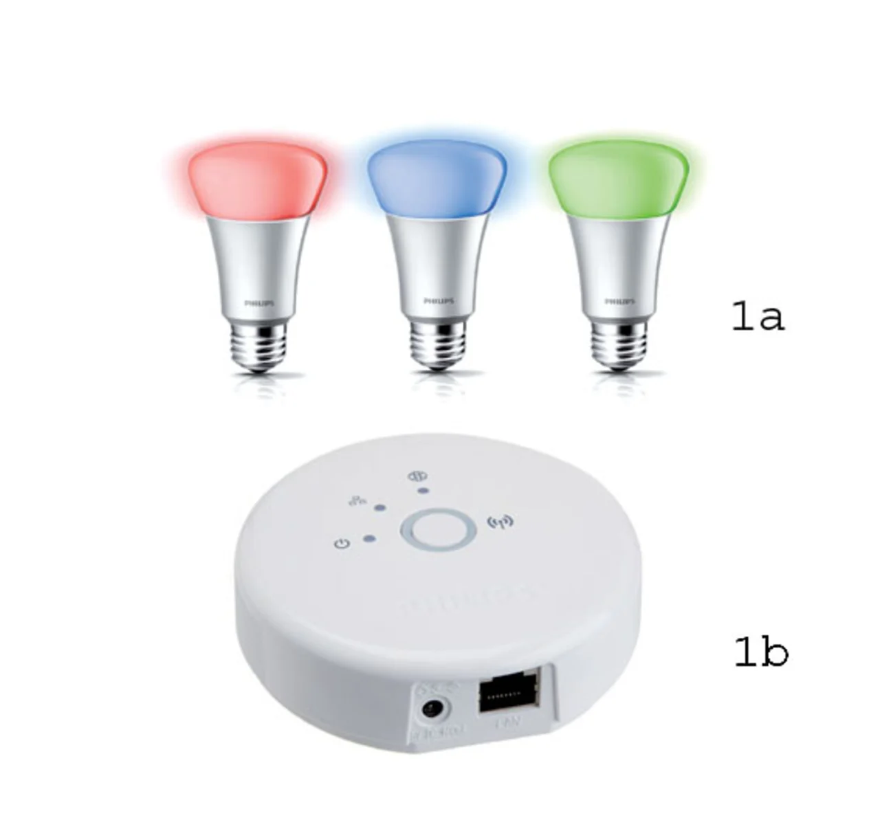 Besondere Erwähnung verdienen die aktuellen Entwicklungen zum Light Link Profile, mit denen ZigBee in gewisser Weise zu seinen Wurzeln zurückkehrt. Ursprünglich war Philips mit seinem Lampengeschäft ein wesentlicher Treiber für die Gründung der ZigBee-Allianz. Allerdings haben sich danach die Hersteller von Lichtsystemen lange Zeit im Hintergrund gehalten. In der Kombination der Verfügbarkeit von immer günstigerem Silizium einerseits und von neuen Leuchtmitteln andererseits, die zusätzliche Funktionen wie z.B. die Einstellung der Lichtfarbe ermöglichen, längere Lebensdauern erreichen und damit verbunden die Chance bieten, höhere Preise umzusetzen, erscheint aber nun eine Kommunikationsanbindung sinnvoll und eigentlich unumgänglich. Entsprechend groß ist der Impetus, der gegenwärtig in diesem Umfeld zu verspüren ist. Zertifizierte Produkte sind in den USA auf dem Markt, wenn auch noch zu hohen Preisen. In Bild 1 ist der Inhalt eines Starter Kit von Philips gezeigt: 199 US-Dollar für drei Glühbirnen (Bild 1a) und eine Funkbrücke (Bild 1b) sind sicherlich erst einmal ein Liebhaberpreis.