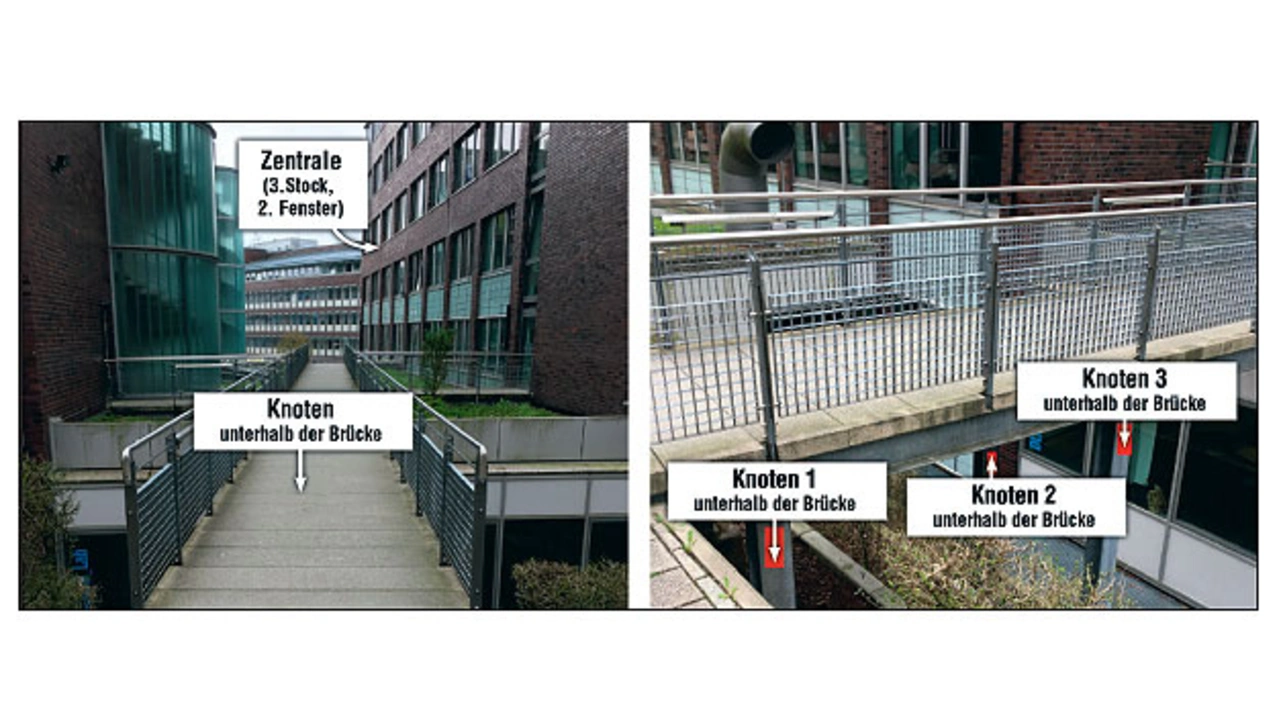 Das komplette Messsystem mit den drei Sensorknoten und der Zentrale, die den IQRF-Coordinator mit dem Fox-3-Modul bildet sowie die Datenübertragung per Sigfox vornimmt, ist an einer Fußgängerbrücke auf dem Gelände der Technischen Universität Hamburg erprobt worden. Nach der Befestigung der drei Sensorknoten an der Brücke wird der IQRF-Coordinator über den Programmer CK-USB-04A mit einem Notebook verbunden, auf dem die IQRF-IDE installiert ist, und die Option Discovery aufgerufen, woraufhin das IQRF-Funknetzwerk automatisch gebildet und die entsprechende Konfiguration abgespeichert wird.