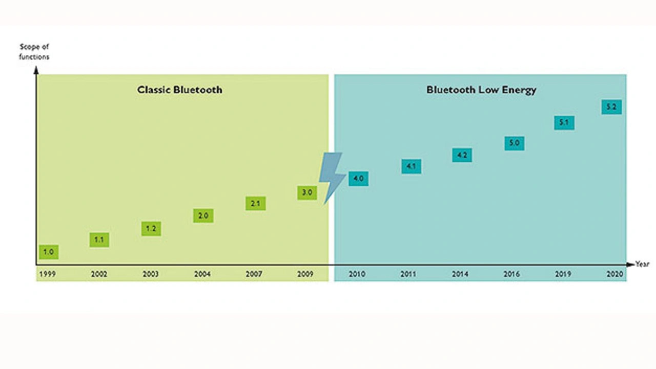 Die einzelnen Bluetooth-Standards werden in Form von Zahlen benannt, also 1.2 oder 2.1. Mit jeder neuen Versionsnummer wurden Erweiterungen definiert, die für die verschiedenen Anwendungen mehr oder weniger hilfreich sind. Dabei wird schnell übersehen, dass der Sprung auf die Revision 4 nicht nur mit einigen neuen Funktionen einhergeht. Vielmehr handelt es sich um eine grundsätzlich andere Technik, die nicht kompatibel zu den Vorgängerversionen ist.
