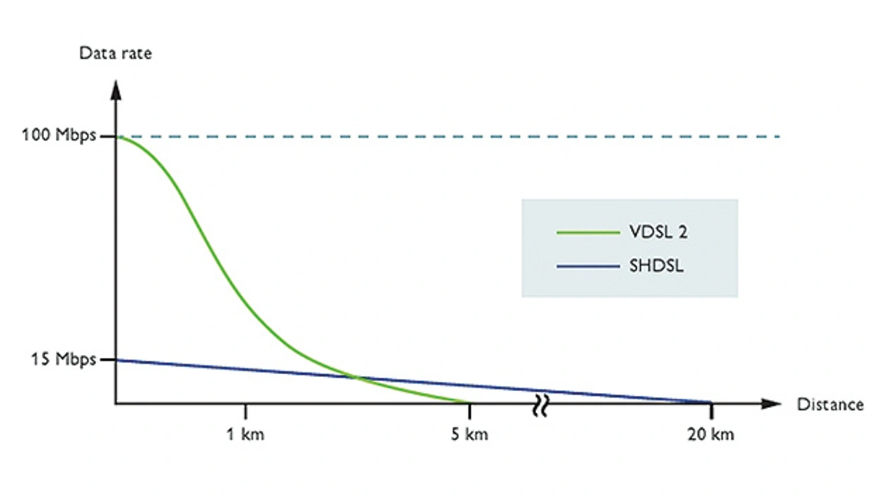 Geht es um die Reichweite, ist SHDSL klarer Sieger unter den gegenübergestellten Techniken. Insbesondere wenn ein geringes oder mäßiges Datenaufkommen zu erwarten ist, empfiehlt sich SHDSL als robustes und bewährtes Übertragungsverfahren.