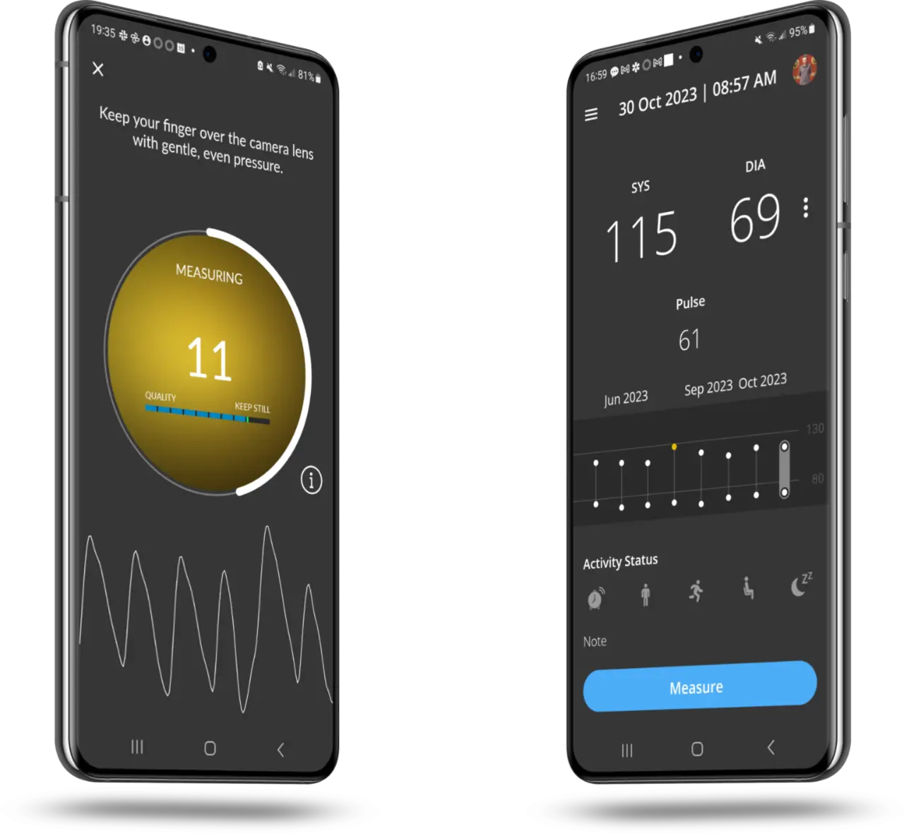 Finger auf die Kameralinse legen und in 30 Sekunden den Blutdruck messen: Mit der Biospectal OptiBP-App lässt sich erstmals der Blutdruck per Smartphone selbst checken und überwachen. Als erste App überhaupt ist OptiBP nach den CE-MDR-Vorschriften der EU für Medizinprodukte zertifiziert.