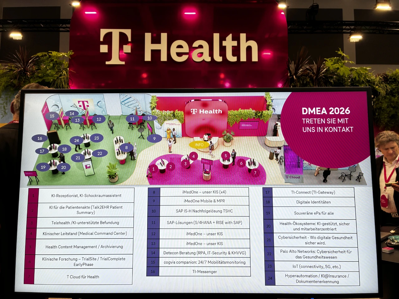 Die Telekom hat ein breites Digitalisierungsangebot für die Gesundheitswirtschaft, der Stand auf der DMEA führte in Halle 3.2. alle Digital Health-Themen der Bonner zusammen.