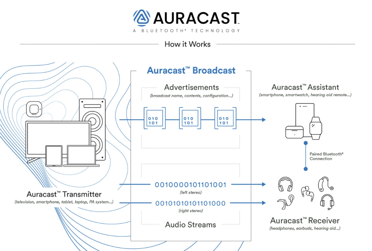 Die neue Bluetooth-Funktion »Broadcast Audio« soll mehr Inklusion für Hörgeschädigte bringen und die Audioübertragung im öffentlichen Raum neu denken. Nach einer ersten Vorstellung 2022 erfolgte auf der CES 2024 der offizielle Marktstart der Technologie durch die Bluetooth SIG.