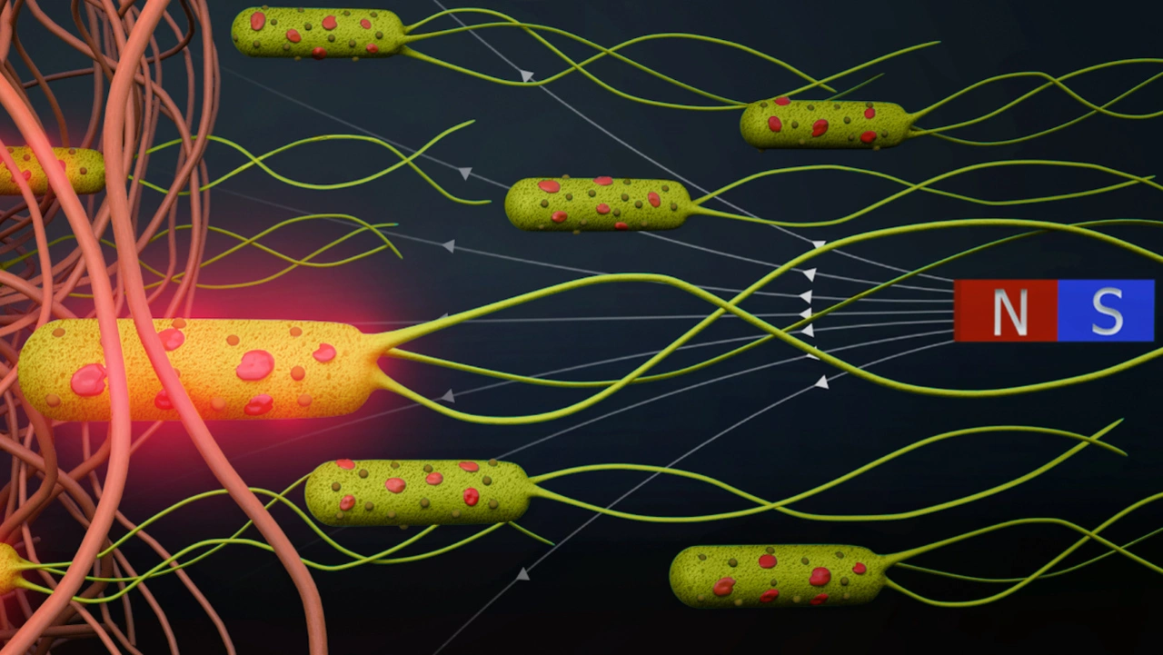 Die zweite Komponente, die die Forscher*innen an das Bakterium anbrachten, sind magnetische Nanopartikel. Sind die sehr beweglichen und agilen Bakterien einem Magnetfeld ausgesetzt, wirken die winzigen Eisenoxidpartikel wie ein zusätzlicher Antrieb. Zudem lässt sich das Schwimmen der Bakterien leichter kontrollieren – ein verbessertes Design, sollten solche Mikroroboter eines Tages durch einen Körper gelenkt werden.