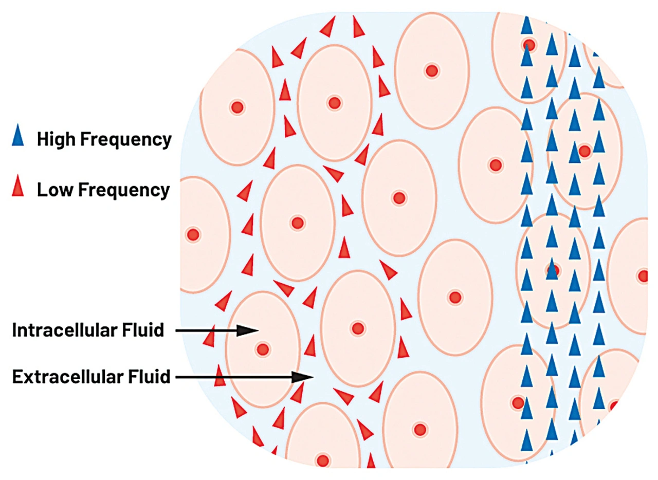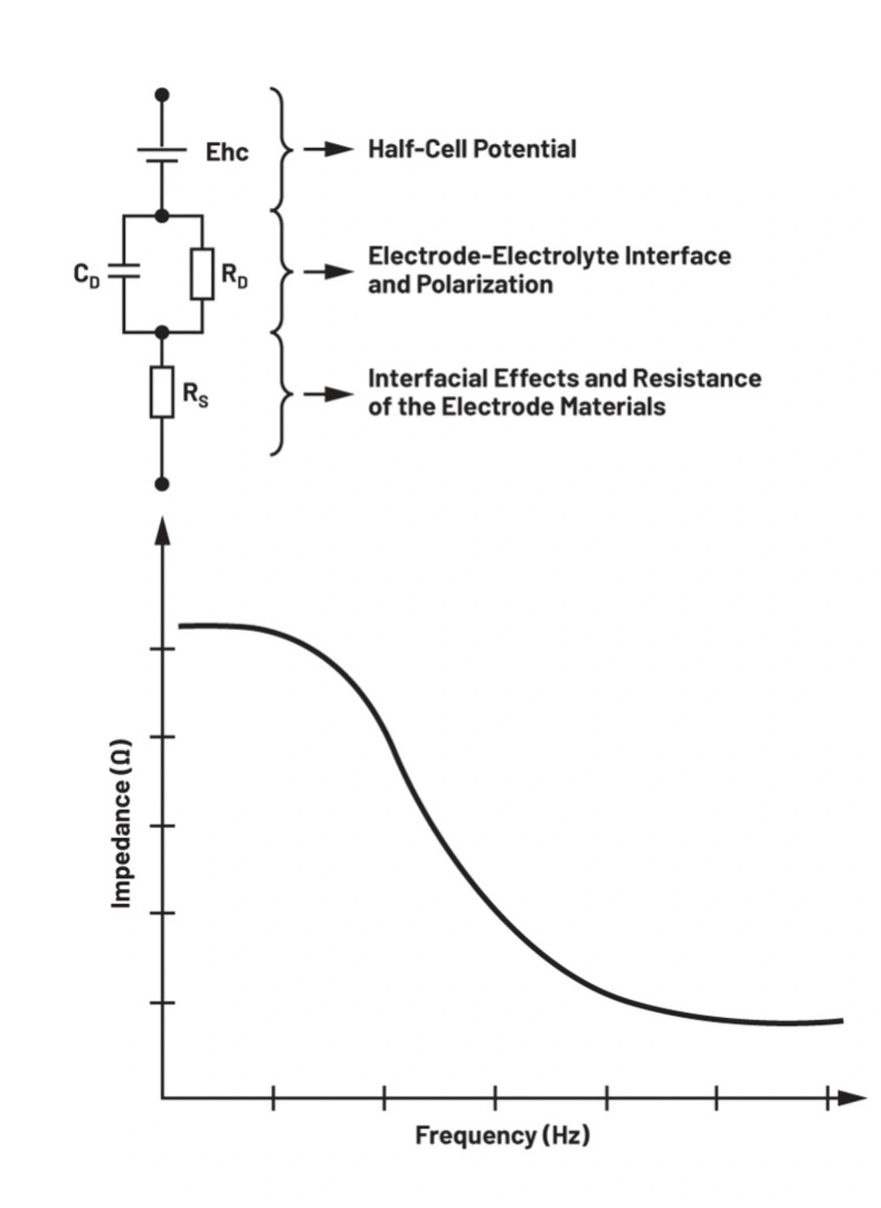 Eine elektronische Schaltung, die das Verhalten des menschlichen Körpers nachbildet, kann als Widerstand Ri (intrazellulärer Widerstand) in Reihe mit einem Kondensator (Zellmembrankapazität) modelliert werden. Diese Komponenten liegen parallel zu einem weiteren Widerstand Re (extrazellulärer Widerstand), wie Bild 2 darstellt. Der Impedanzbereich des menschlichen Körpers variiert je nach Frequenz. Bei niedrigen Frequenzen (ca. 1 kHz) liegt er zwischen 10 kΩ und 1 M, bei hohen Frequenzen (ca. 1 MHz) zwischen 1 k und 100 kΩ. Das Impedanzspektrum des zu untersuchenden Körperbereiches kann sich je nach biologischem Gewebe und makroskopischer Struktur ändern. Die Anregungsfrequenz der EIS-Messung variiert entsprechend je nach medizinischer Anwendung und zu untersuchendem Körperabschnitt.