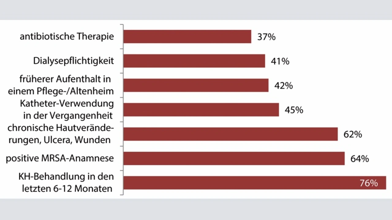 Problemkeime wie multiresistente Erreger, gegen die Antibiotika häufig nicht wirken, können besonders für gesundheitlich geschwächte Menschen gefährlich werden. Über die Hälfte aller ambulanten Pflegedienste in Deutschland (57 Prozent) haben im vergangenen Jahr Menschen versorgt, bei denen dokumentiert war, dass sie mit einem solchen Erreger besiedelt waren. Soweit bekannt, kamen ambulante Dienste am häufigsten in Kontakt mit den drei Erregergruppen MRSA (zu 95 Prozent), ESBL-Bildner (zu 25 Prozent) und 3-MRGN/4-MRGN (zu 18 Prozent).