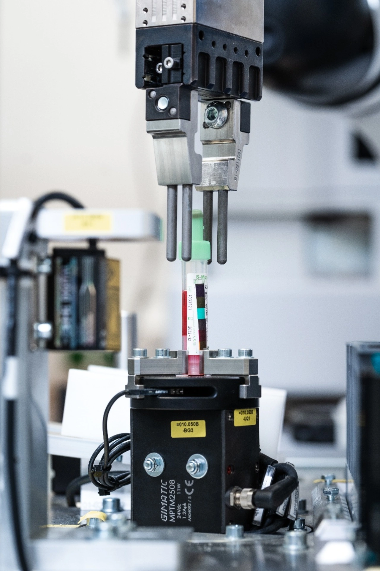 Für den Analysevorgang gibt das Personal der Klinik die Probenröhrchen in eine Übergabestation. Der Roboter nimmt die Proben, scannt den Barcode über eine Kamera, entfernt, wenn notwendig, die Probenkappen, sortiert diese in Racks und startet den jeweils passenden Zentrifugations- und/oder Analyseprozess. Das Untersuchungsergebnis wird an das bestehende IT-System übermittelt. Das Labor kann somit in der Nacht oder an Wochenenden auch ohne Medizinisch-Technische Laboratoriumsassistent:innen (MTLA) betrieben werden.