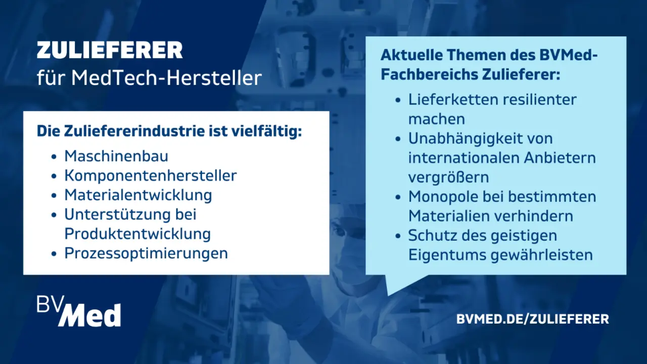 Schwierige Zeiten schweißen zusammen: Strenge Regulatorik und eine komplexe Entwicklung führen zu langfristigen Partnerschaften. Die Medizintechnik arbeitet eng mit ihren Zulieferern zusammen und der BVMed startet dazu ein neues Themenportal. Die Zulieferindustrie soll stärker in den Fokus rücken.