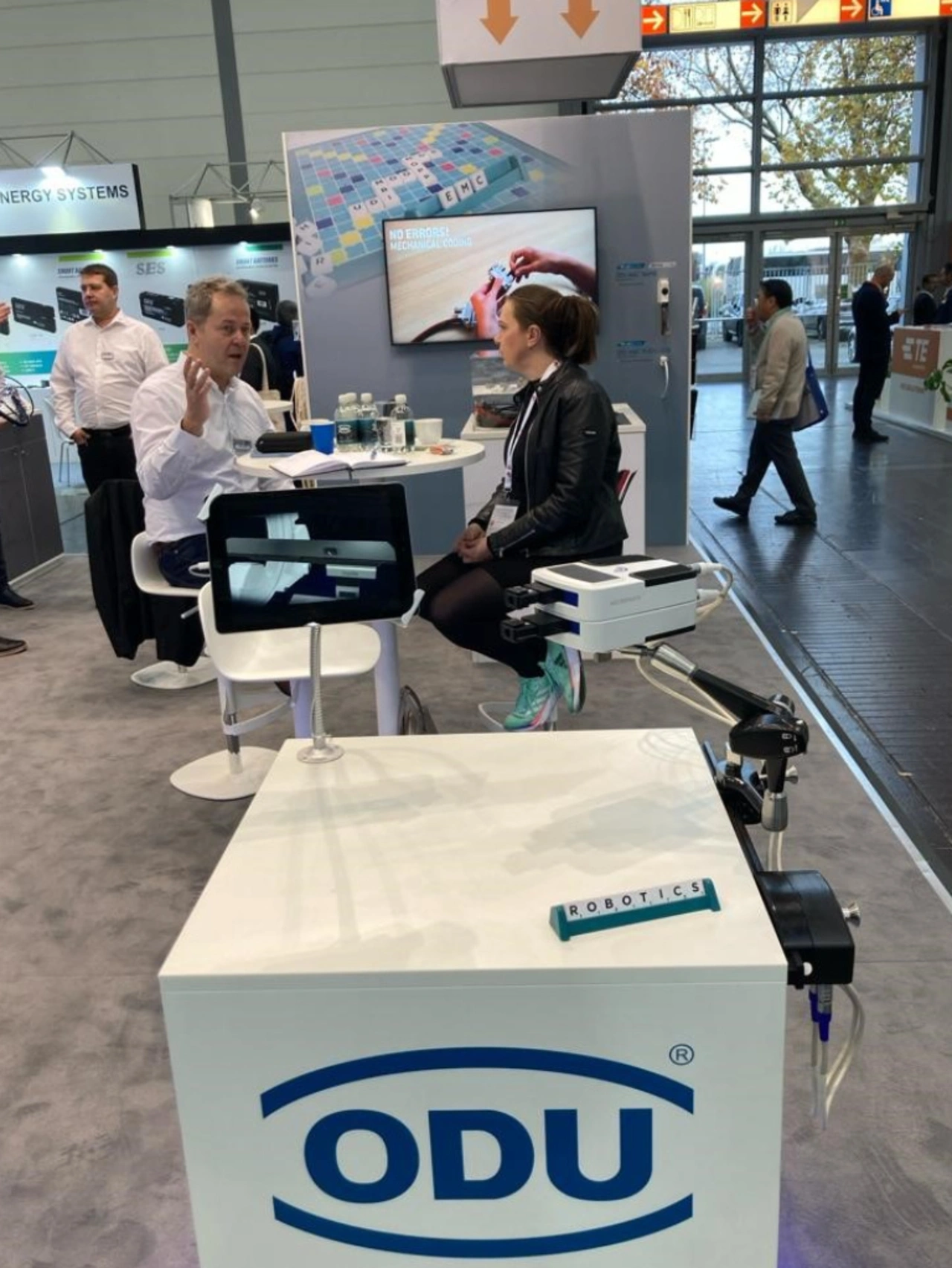 Für die Mühldorfer-Konnektivitätsexperten war es der zweite Auftritt in Düsseldorf. Gerade die MDR und die Anpassung ihrer Designs stelle viele Hersteller nach wie vor eine Herausforderung dar, sagt Mathias Wuttke, Business Development Manager Medizintechnik: »Wir merken immer noch, dass viele Firmen aufwachen.« Dementsprechend groß sei die Nachfrage und der Informationsbedarf, gerade weil die MedTech-Projekte sich verschlanken und damit komplexer werden. Dazu kommt laut Wuttke, dass auch die Funkverbindungen zunehmen. »Vieles funktioniert nur noch per Datentransfer, Kunden wollen Stecker im OP tendenziell reduzieren.« Für eine Vereinfachung der Konnektivität soll zudem ein medizinischer USB-Standard sorgen, der Medizintechnikmarkt für Stecker sei also ordentlich in Bewegung. Die Mühldorfer sind dennoch zuversichtlich und adaptieren die Entwicklung. »Bei hochwertigen Geräten werden Stecker bleiben, und aus Sicherheitsgründen behalten auch kabellos verbundene Medizingeräte die Anschlüsse noch sehr lange.« Neben seinem individuell konfigurierbaren Steckerprogramm zeigte ODU daher mit Stolz erfolgreiche Kundenprojekte am Compamed-Stand in Halle 8a: Ein Beispiel ist die neue Herz-Lungen-Maschine S7 der Münchner Firma LivaNova. Statt bisher zwei Kabelkonfektionen hat das 2023iger Modell 52 Kabelverbindungen, beidseitig mit Steckern, Kupplungen und Durchführungen, jeweils für Signale, Strom oder auch beides, alle in verschiedenen Größen. »Von den 52 Steckverbindungen ist keine identisch. Die Herausforderung waren die Metallstecker, « sagt Mathias Wuttke. Nach IEC 60601-1 müsse ein Berührschutz nach 2MOPP gewährleistet sein. »Wir haben in jeder Baugruppe einen neuen PEEK-Isolationskörper gebildet, der für die notwendigen 8 Millimeter weiter hochgezogen wurde.« So konnte zu der mit den Metallsteckern gewährleisteten Robustheit auch der Isolations- und Berührschutz an der Herz-Lungen-Maschine eingehalten werden.