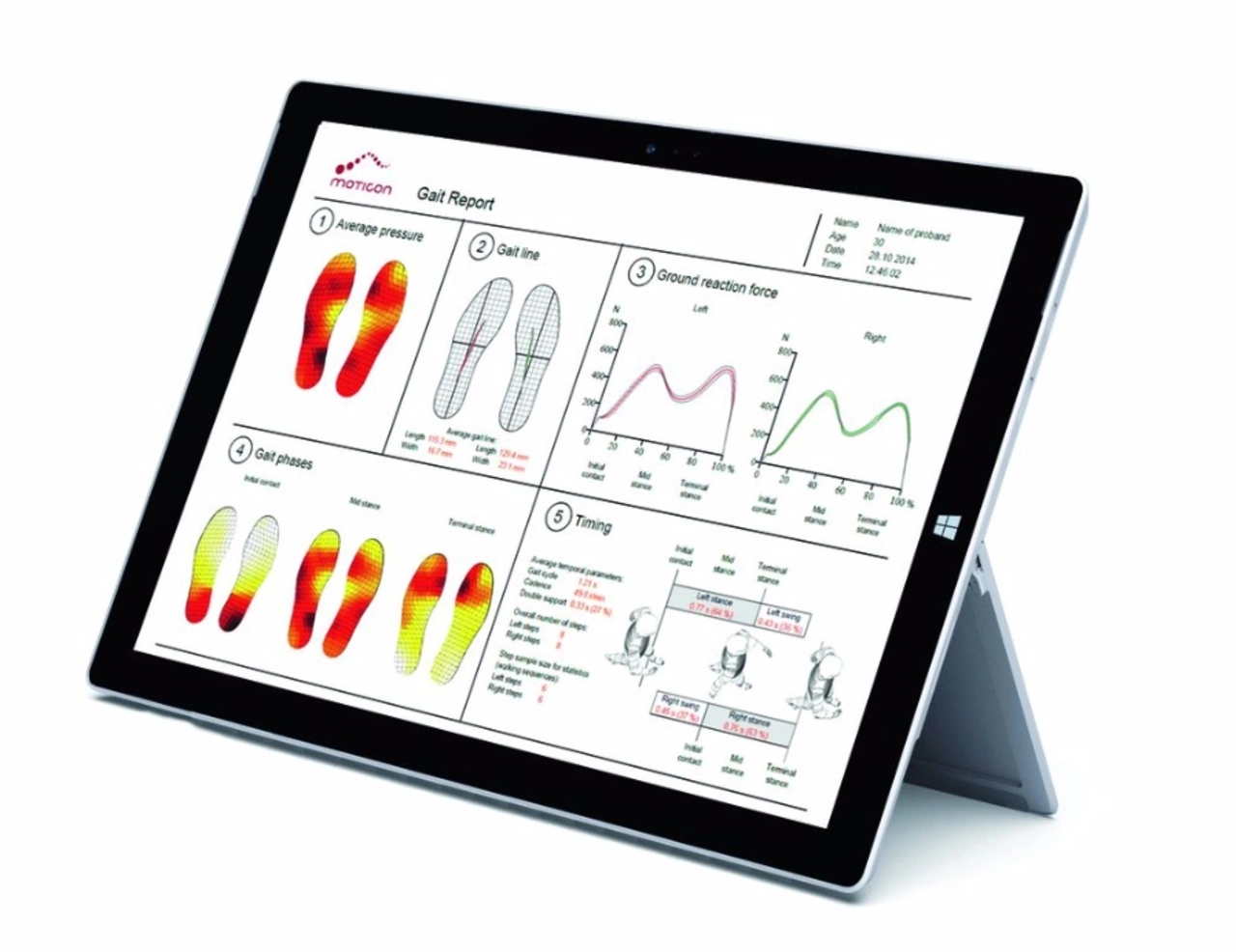 Ein solches Messsystem, das ohne Kabel, Zusatzgeräte, Laufband oder Kraftplatte auskommt, muss sämtliche Technikkomponenten vollständig integrieren. Die Kompaktheit darf dabei aber nicht auf Kosten der Aussagekraft der Messungen gehen: Moticon-Systeme zum Beispiel sind klinisch validiert und verfügen über 13 kapazitive Sensoren zum Erfassen der Fußdynamik, einen 3D-Beschleunigungssensor zum Messen der Bewegungsdynamik, ein Funkmodul zum Übermitteln der Daten sowie ein Speichermodul für Langzeitmessungen. Ein eingebautes Funkmodul sendet die Daten an einen PC oder ein Smartphone. Die Daten müssen nicht sofort übertragen werden, sondern können – etwa in der autarken Langzeitmessung bei Patienten oder am Arbeitsplatz in der Fabrik – zunächst auf dem Flash-Speicher gesichert werden. Später erfolgt dann wahlweise über Funk oder ein USB-Kabel das Übertragen der Informationen auf den auswertenden Rechner.