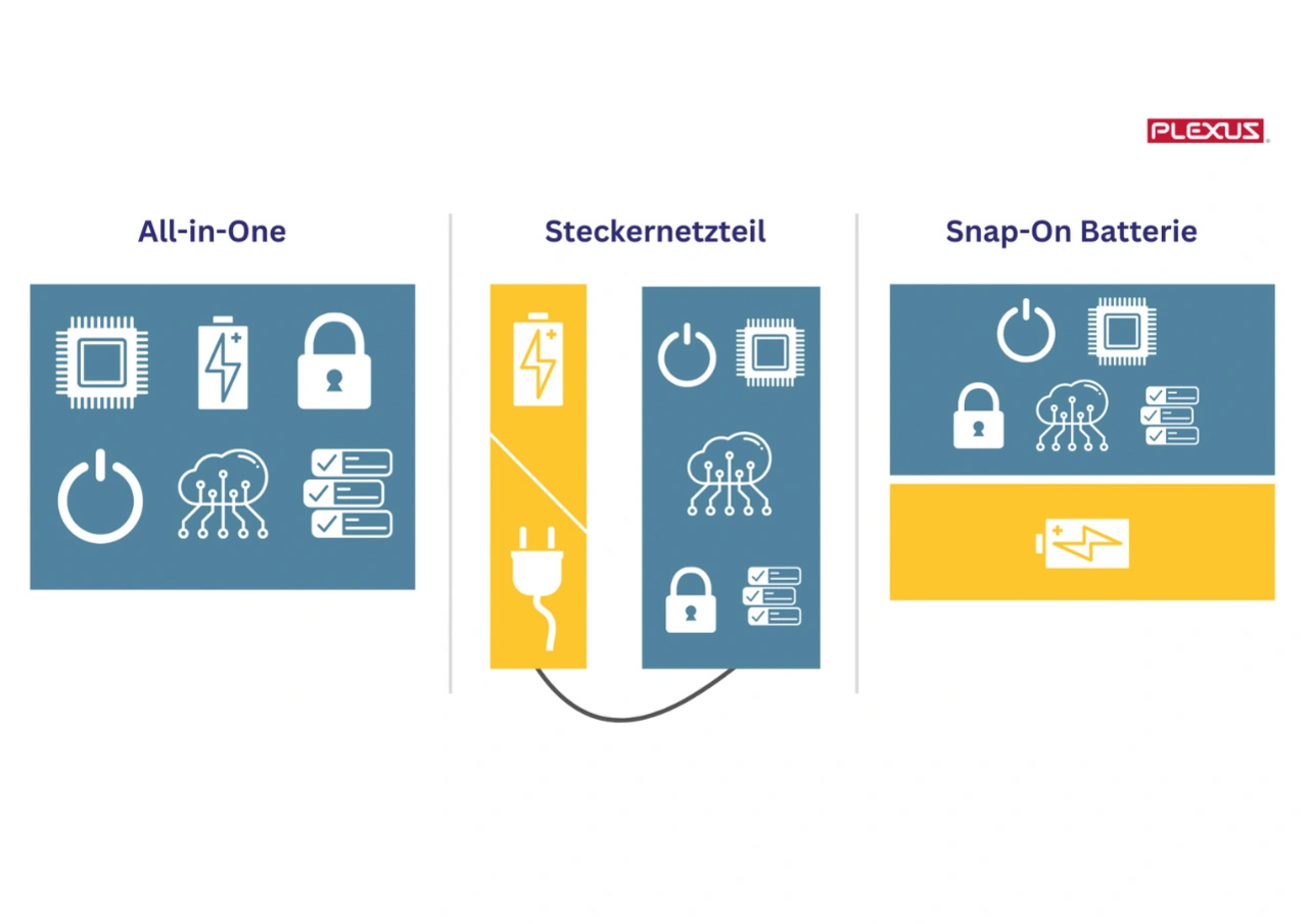 Aus Sicht der Usability geht es in der Medizintechnik oft um die Themen Praktikabilität und Sicherheit (Bild 3). So profan es klingen mag: Gerätekabel im Operationssaal oder im Behandlungszimmer können schnell zur Stolperfalle mutieren. Batterien wiederum müssen ausgewechselt, Akkus wieder aufgeladen werden. Für ein tragbares Medizingerät nutzte Plexus unterschiedliche Archetypen und simulierte ihre Handhabung am Patienten. Gemeinsam mit dem Kunden kamen die EMS-Experten zu einem optimalen Ergebnis, das in die finale Produktarchitektur einfloss.